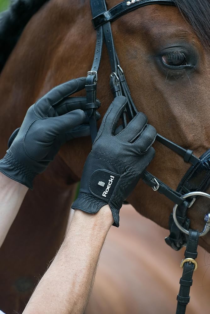 The classical gloves are now also available with exclusive ROECKL labelling on the hook and loop fastener-fastener. The ROECK GRIP are made of fine PU-Material with an excellent grip. The supple, permeable and durable gloves are very comfortable to wear. Touchscreen compatible. The gloves are washable at 30°C. Colors: black, white. Text by CALEVO.