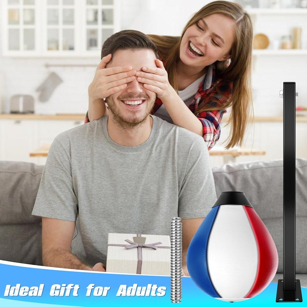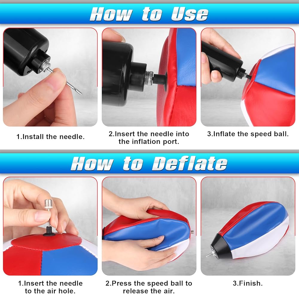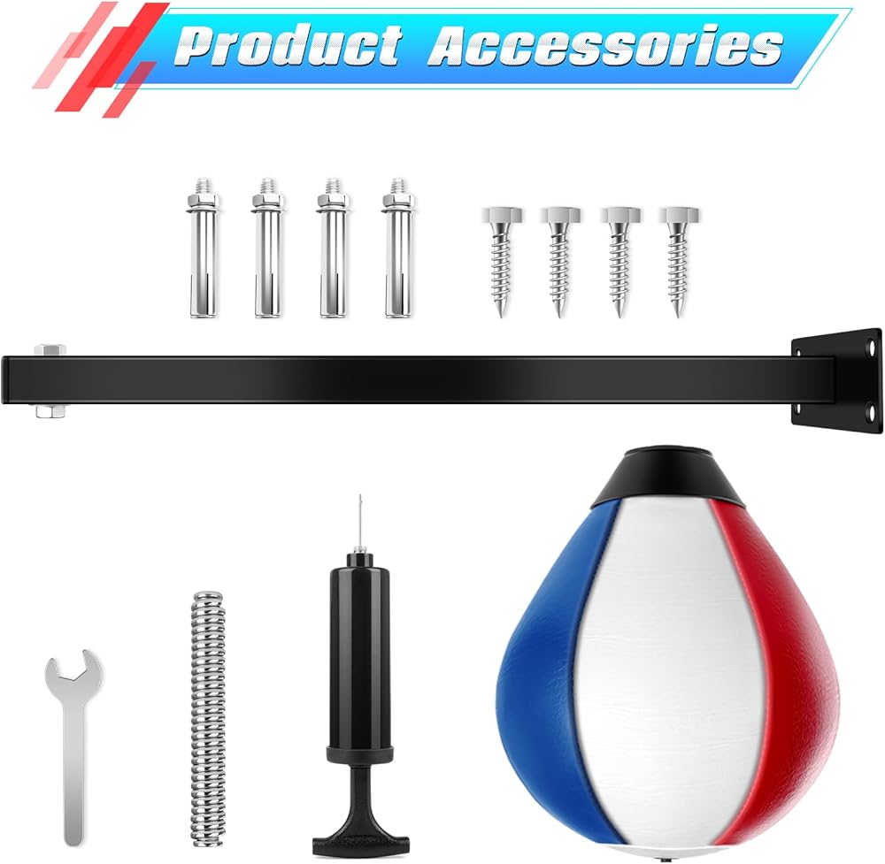تأتي العبوة مع: تتضمن العبوة حقيبة سرعة الملاكمة، وحامل حقيبة السرعة، وزنبرك عالي المرونة، ومضخة هواء، ومفتاح ربط، وإكسسوارات مسامير مختلفة وتعليمات.
