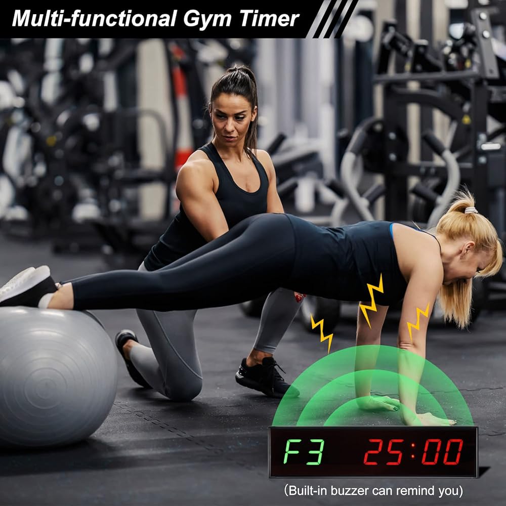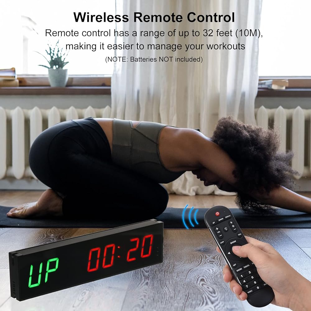 شاشة رقمية LED كبيرة: تتميز ساعة الصالة الرياضية مقاس 11.4 بوصة × 3 بوصة × 1 بوصة بشاشة عرض رقمية كبيرة مقاس 1.5 بوصة، مما يجعل من السهل قراءتها من مسافة بعيدة. مع خمسة مستويات لتعديل السطوع، تكون الأرقام الساطعة والواضحة مرئية حتى في ظروف الإضاءة المنخفضة، مما يضمن إمكانية تتبع وقت التمرين بسهولة.