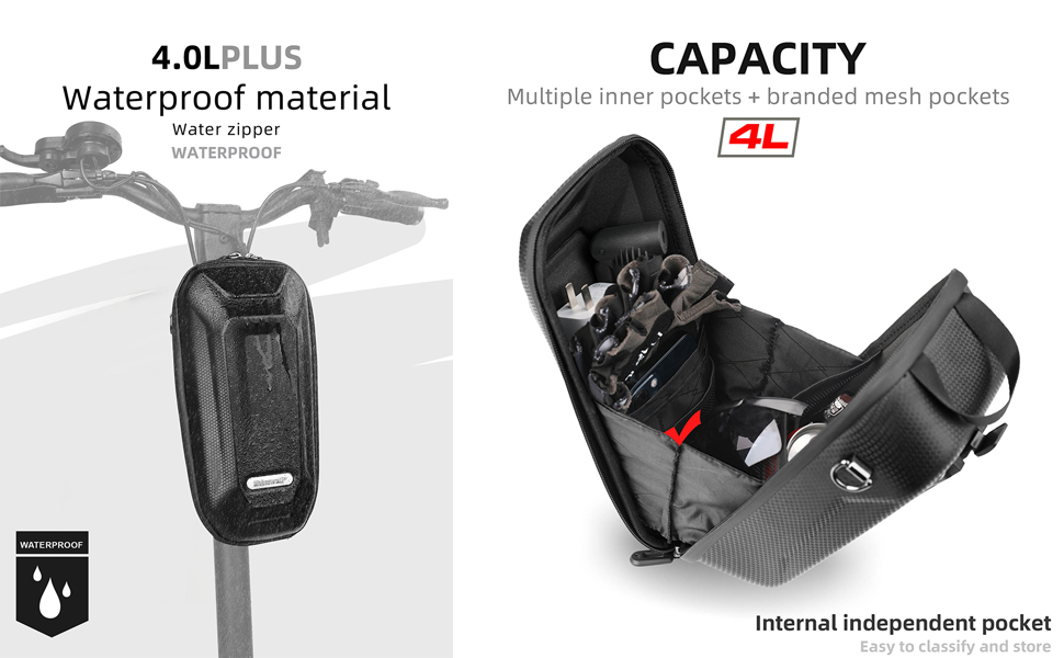تصميم عملي وجميل - يمكنك بسهولة حمل أدوات الشاحن وأدوات الصيانة وغيرها من العناصر مثل الهواتف المحمولة والمفاتيح والمحافظ وما إلى ذلك. دون التأثير على جماليات السكوتر الكهربائي أو الدراجة القابلة للطي. يأتي مع محول سريع التحرير، شكل غلاف صلب من مادة EVA، مقاوم للسقوط وأنيق.