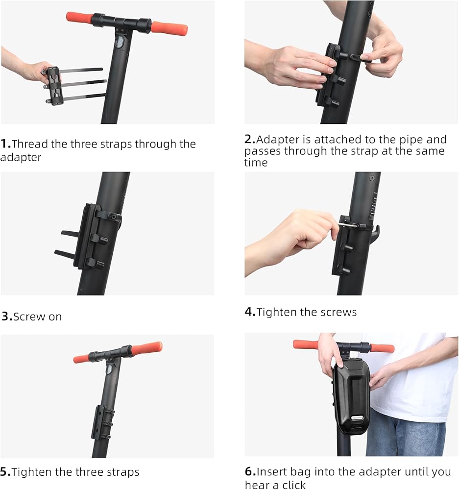 حقيبة كتف حمل متعددة الوظائف سهلة التركيب: تثبيت ثلاثي النقاط مع حامل بلاستيكي ملولب قابل للتعديل، يمكنك ضبط طول الحزام وفقًا لسكوتر أو دراجتك القابلة للطي، نظام السكك الحديدية القابل للتعديل يمكن أن يحافظ على الحقيبة في وضع ثابت. تحتوي الأشرطة البلاستيكية الملولبة على أغطية مطاطية لن تلحق الضرر باللمسة النهائية. مع ملصقات لتثبيت أكثر أمانًا، تأتي مع حزام كتف قابل للتعديل للتنقل.