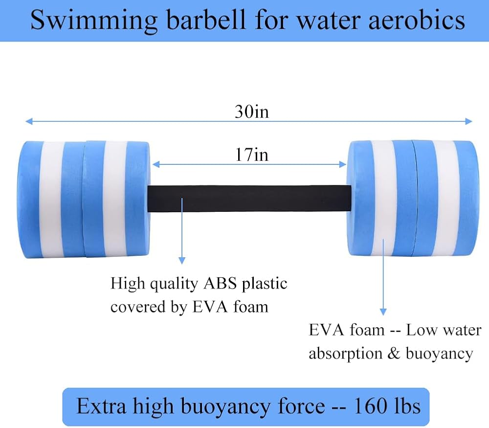 أكوا بول باربل للتمارين الرياضية المائية وأوزان الحديد - الدمبل المائية لمعدات تمارين اللياقة البدنية المائية - بار تمرينات السباحة المائية - أجراس حمام السباحة الرغوية تطفو على الماء للأطفال
