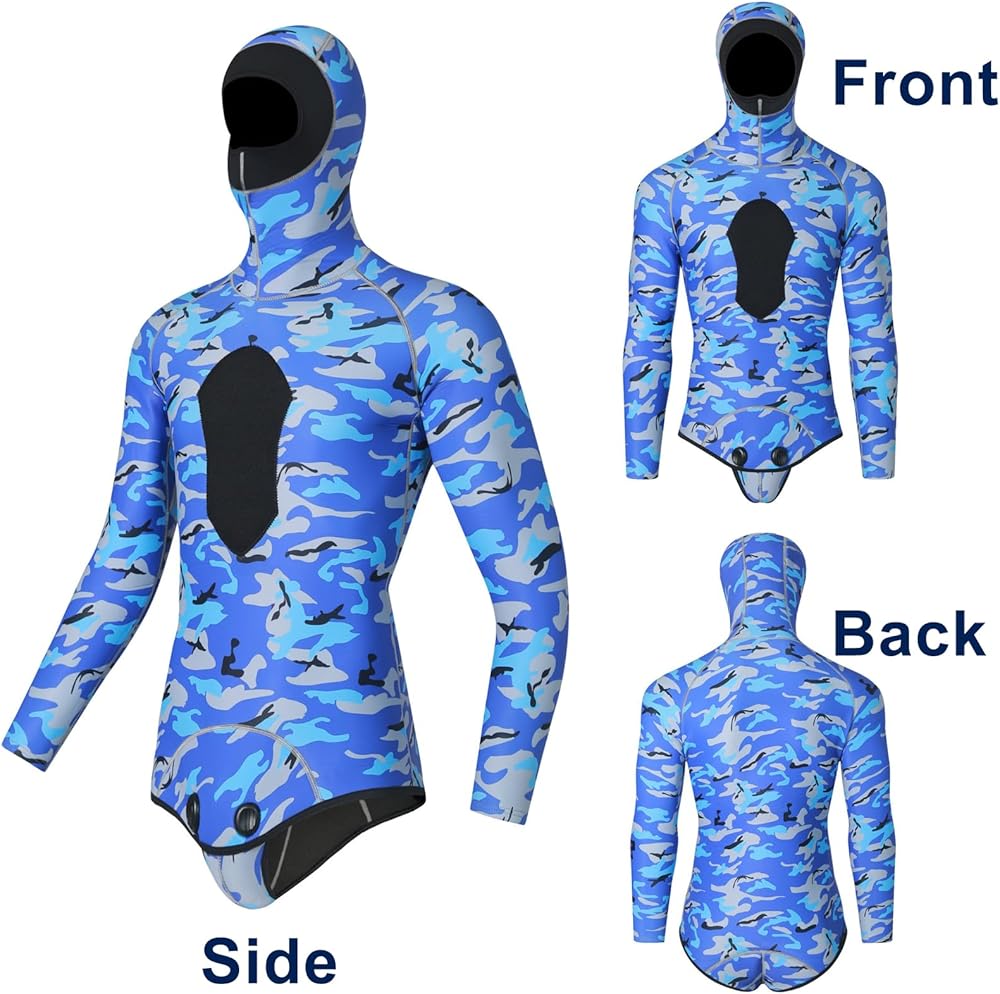 2-Pieces Design: The Diving Tops with hooded and bottom button which easy to release or change outfits as your special request.