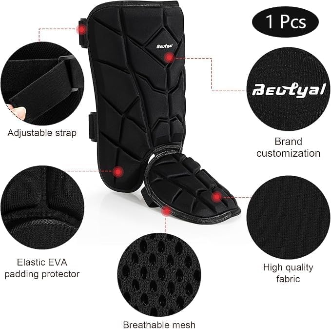 【واقي ساق معدات الحماية】يتميز واقي ساق البيسبول الخاص بنا بتقنية درع الصدمات مع وسادات مرنة عالية المرونة من أسيتات إيثيلين-فاينيل (EVA)، ويوفر أقصى حماية للساق والكاحل والمشط.