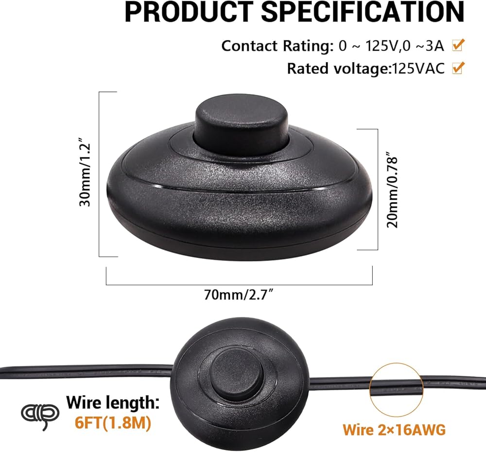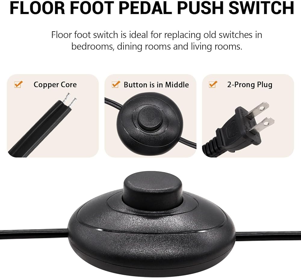【سهل التركيب】: تم توصيل المفتاح مسبقًا وبه قابس، ويتمتع المشترون بحرية قطع السلك وفقًا للمكان الذي يريدون تثبيت مفتاح القدم فيه.