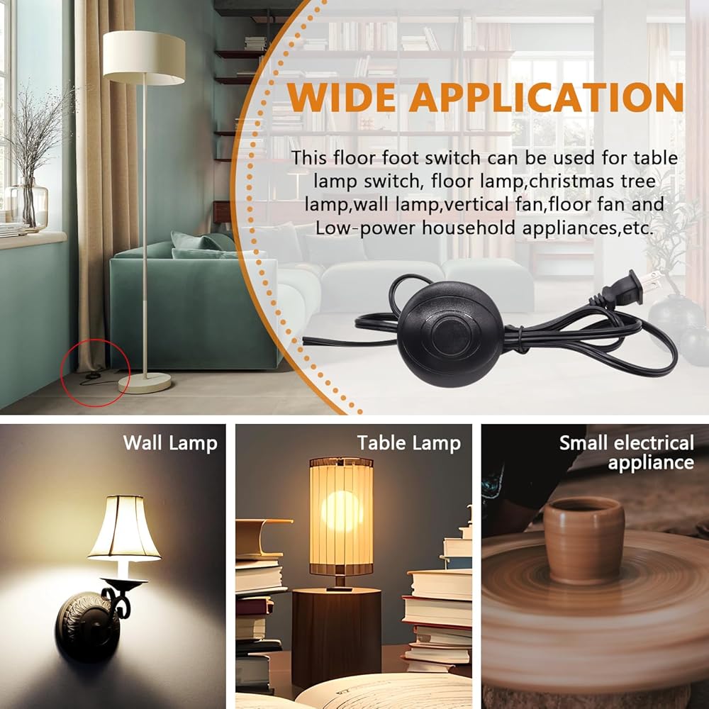 توافق واسع: يمكن استخدام مفتاح القدم الأرضي هذا لمفتاح مصباح الطاولة، ومصباح الأرضية، ومصباح شجرة الكريسماس، ومصباح الحائط، والمروحة العمودية، ومروحة الأرضية، والأجهزة المنزلية منخفضة الطاقة، إلخ.