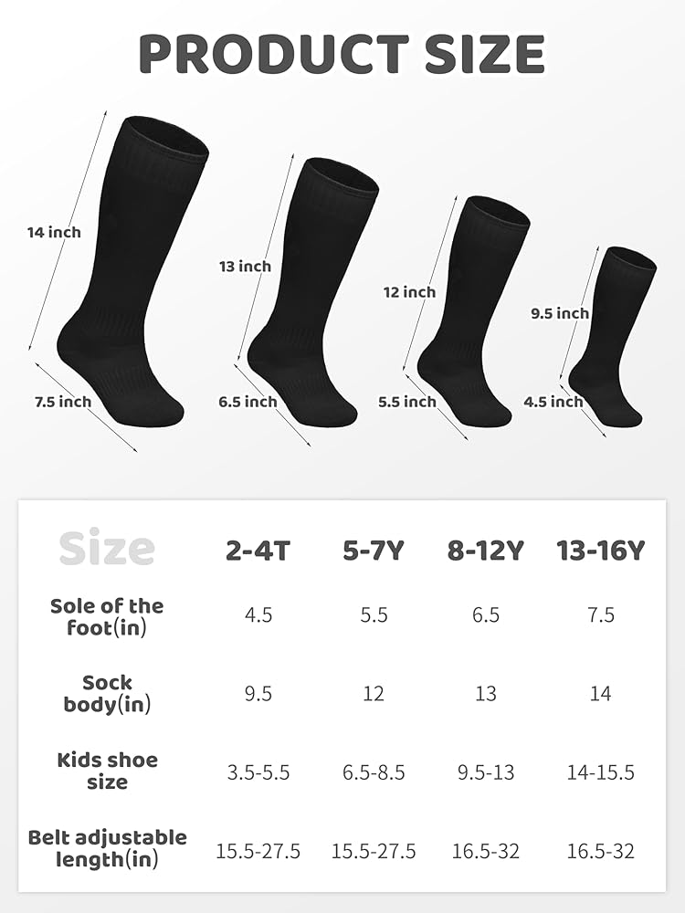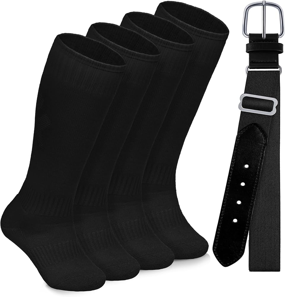 2 جوارب بيسبول ومجموعة حزام واحدة: مجموعة جوارب بيسبول للأطفال الصغار ومجموعة حزام تناسب مقاسات الأطفال الأولاد والبنات من سن 2 إلى 16 عامًا للحصول على حل مثالي للإكسسوارات الجاهزة للعب.