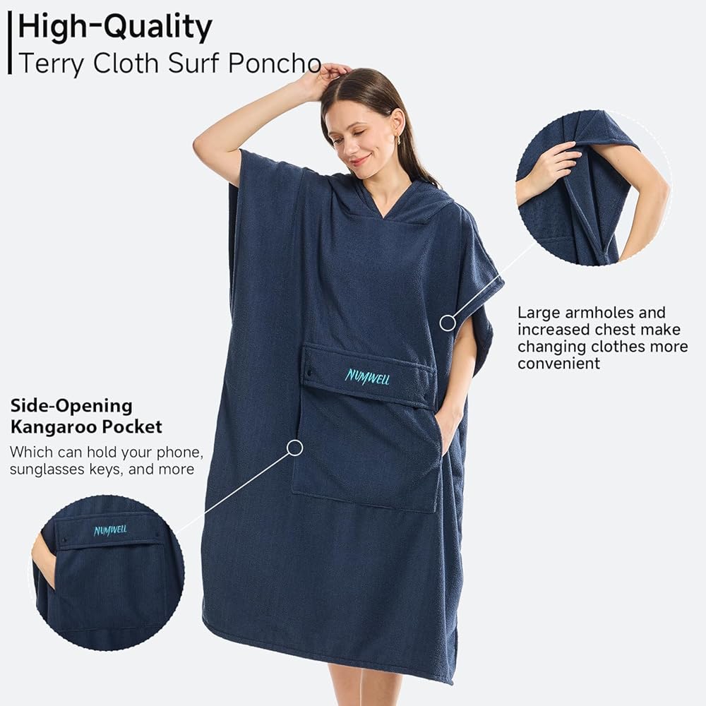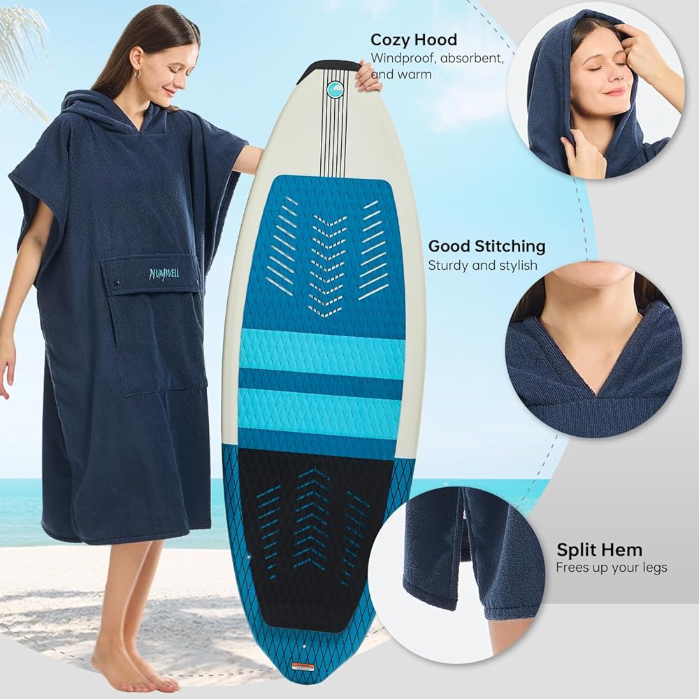 [متعدد الوظائف وهدية مثالية]: معطف ركوب الأمواج للجنسين سهل الطي والتخزين، وسهل الحمل أثناء السفر. تعتبر منشفة تغيير الحفاضات على الشاطئ أفضل هدية لراكبي الأمواج والرياضيين وصالة الألعاب الرياضية ومحبي الشاطئ وأي شخص يستمتع بالرياضات المائية مثل السباحة والغوص وكرة الماء والتجديف. يمكن استخدامه كغطاء منشفة بغطاء للرأس عالي الامتصاص بالكامل.