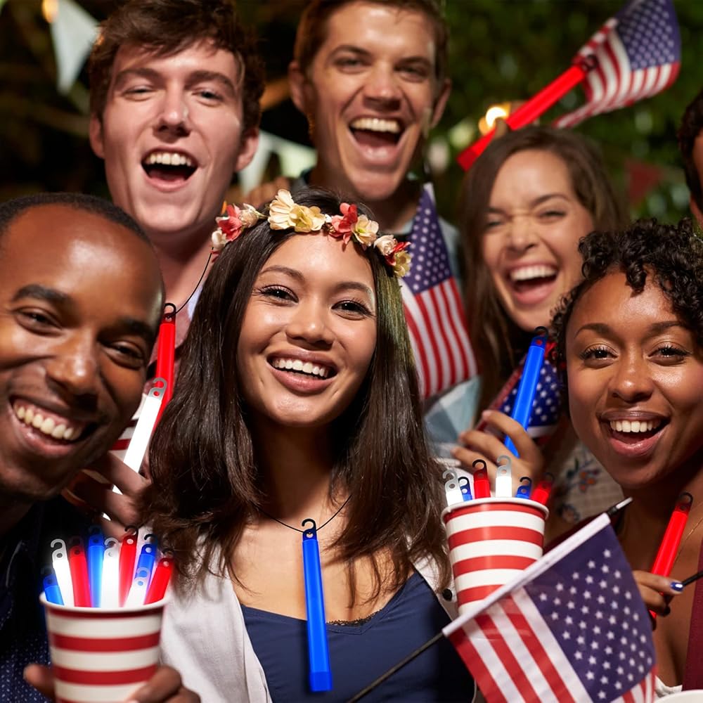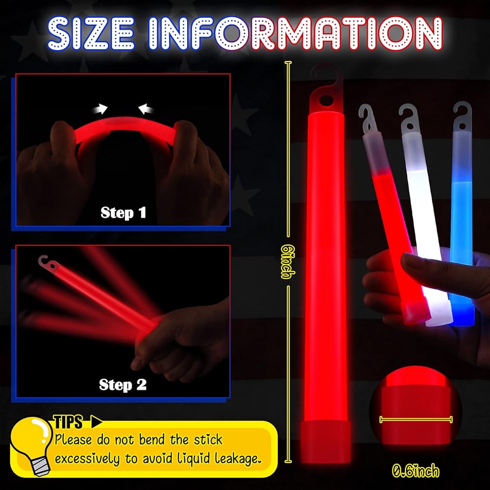 These July 4th glow sticks with 3 classic colors, suitable accessories for 4th of July, Memorial Day party, Independence Day, show your support and attitude.