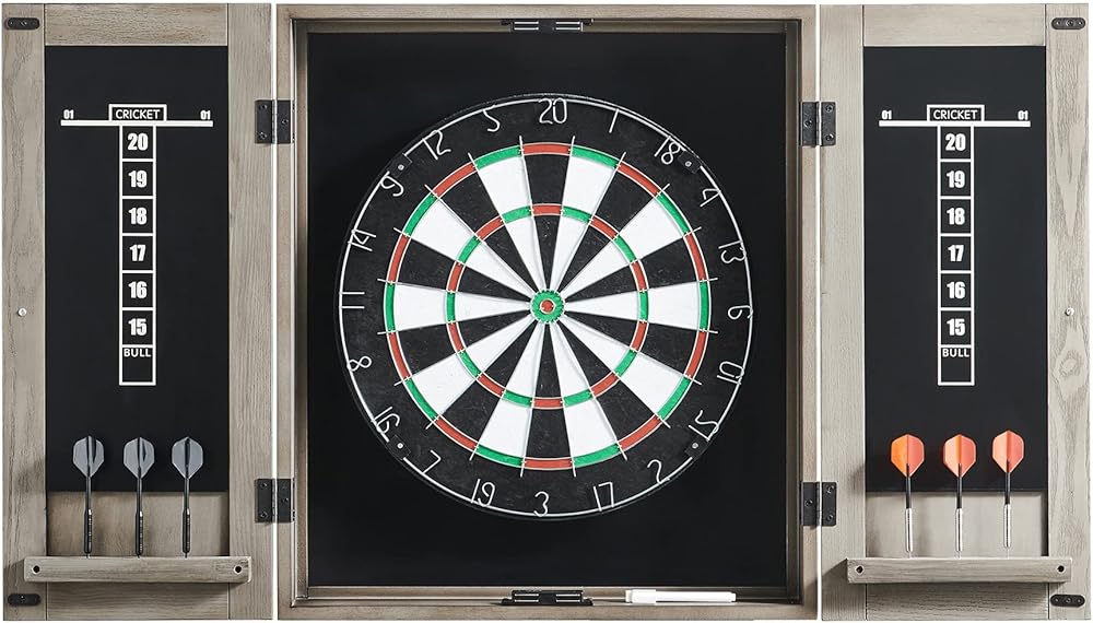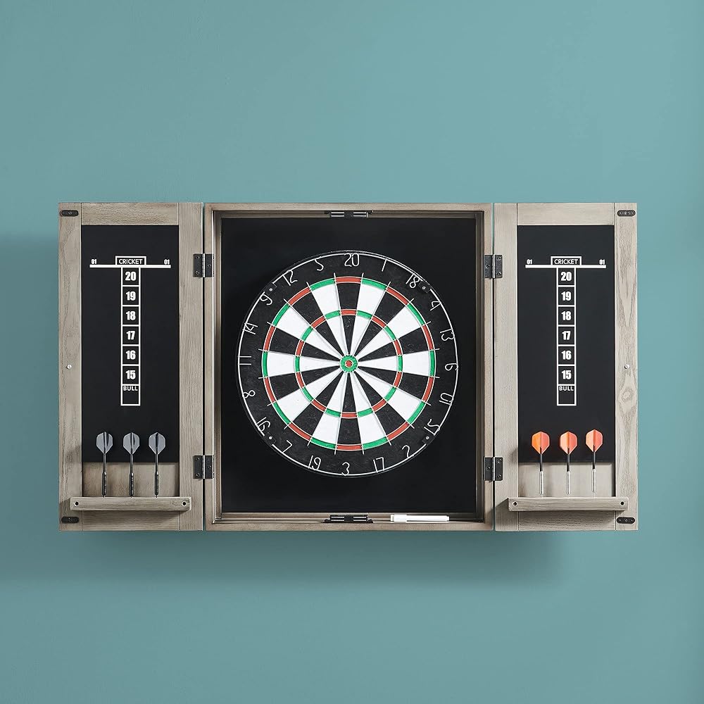 متين وأنيق- خشب البلوط الصلب؛ تجميع بسيط، فقط قم بتوصيل لوحة رمي السهام بالجزء الداخلي من الخزانة، ثم قم بتثبيت الخزانة على الحائط الذي تختاره، وستكون جاهزًا للعب