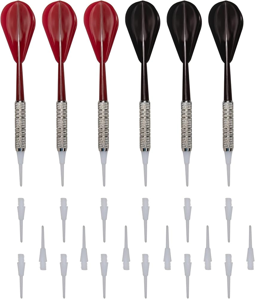 The dartboard cabinet is equipped with auto LEDs that activate when the cabinet doors open and automatically shut off when the doors close, providing convenient illumination during gameplay. It features dual LED scoring displays with dedicated cricket scoring marks, ensuring accurate and easy-to-read scoring for players. Offering various features such as virtual opponent gameplay, double in/out options, handicap, and miss dart features, it caters to players of all skill levels. The dual power capability allows you to power the cabinet using either an AC adapter or 3 AA batteries, providing flexibility in usage. Additionally, the set includes 6 soft tip darts and replacement tips, ensuring you have everything you need to start playing right away.