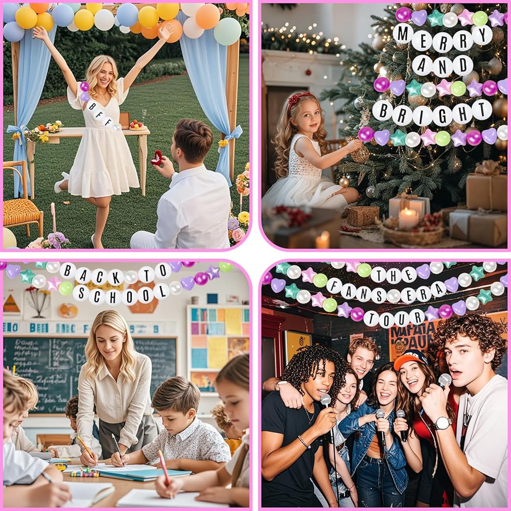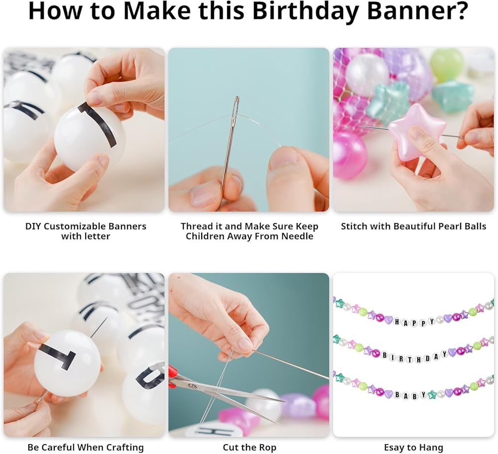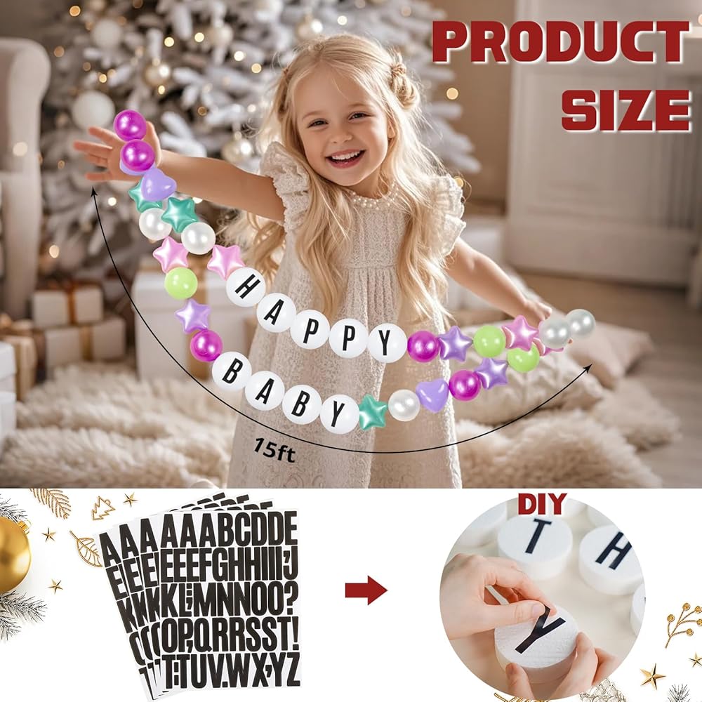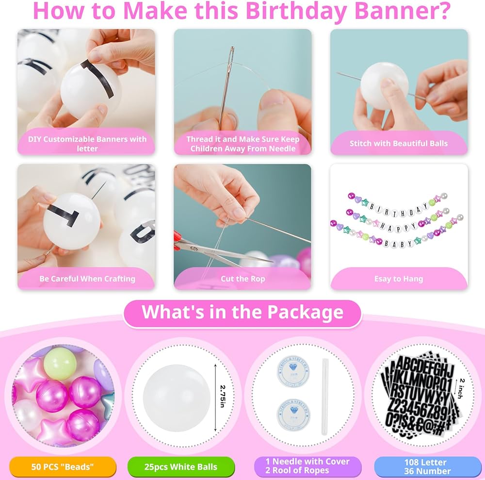 تجربة DIY بدون جهد - ما عليك سوى ربط الملصقات بالكرات البيضاء، ثم قم بتمرير خط الصيد عبر الكرات والدوائر النجمية، وستكتمل لافتة العصر المذهلة الخاصة بك. استمتع بمتعة الصنع مع عائلتك وأصدقائك.