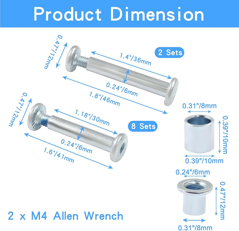 Package Included: Set of 1, 8 x Axle Screw Sets, 2 x Long Axle Screw Sets, 8 x Wheel Spacers, 16 x Frame spacers, 2 x M4 Allen Wrench for Installation. Please confirm the size in product image.