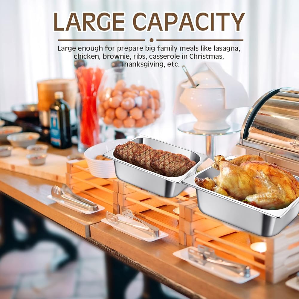 Large enough to prepare big family meals like lasagna, chicken, brownie, ribs, casserole on Christmas, Thanksgiving, etc. It can use in a freezer, oven, steam table, and chafing dishes.