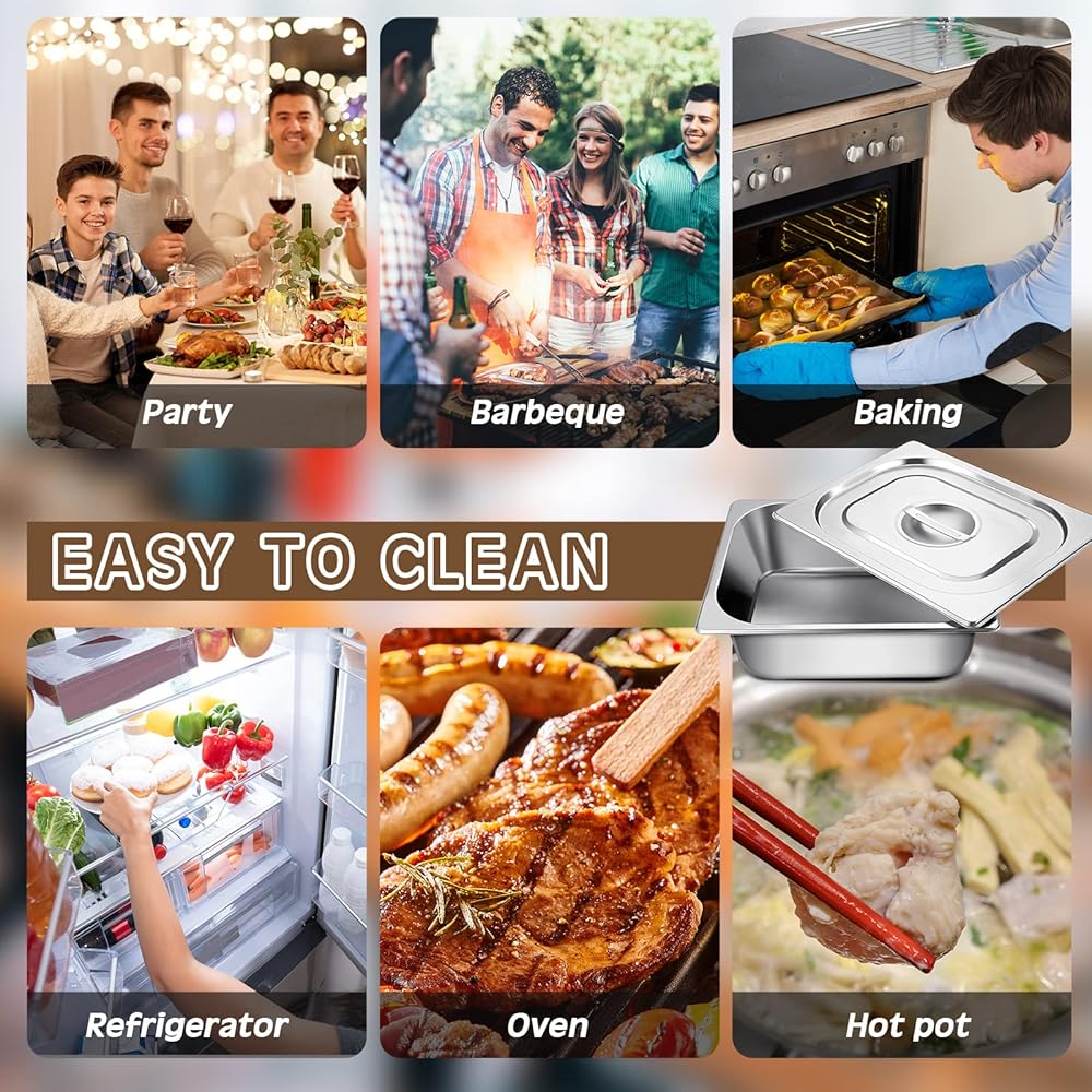 These stainless steel pans are suitable to store hot or cold food for catering party portions, broiling, baking, cakes, pies, casseroles, daily cooking, etc., good for meeting your daily cooking need.
