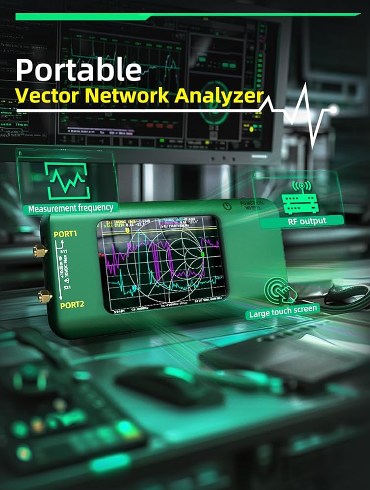 Improved Algorithm Frequency: This network analyzer supports 10KHz-1.5GHz measurement frequency, The 50K-300MHz frequency range of direct output provides better than 70dB dynamic, The extended 300M-900MHz band provides better than 60dB of dynamics, and the 900M-1.5GHz band is better than 40dB of dynamics Great for trouble shooting antennas and Great for trouble shooting antennas and improving performance. Great for trouble shooting antennas.