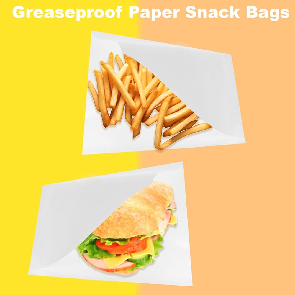The high-density design of the bags prevents grease leakage from staining your hands, clothes or backpack. Convenient for you to pack some fried food, such as french fries, fried chicken, burgers, etc., which can keep the texture of the food well.