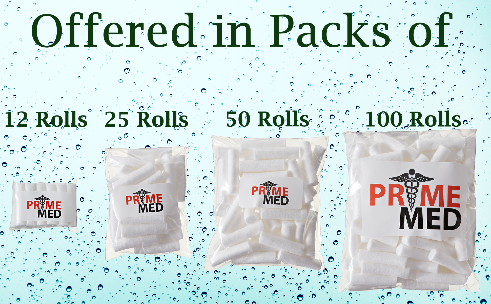 لفافات قطنية ماصة - لفات قطنية بيضاء فاخرة من PrimeMed مصنوعة من القطن البكر الناعم عالي الجودة. تُعد اللفات الخاصة بنا مثالية للاستخدام في التبييض وملء التجاويف والعمليات والإجراءات الترميمية، وهي تُستخدم بشكل متكرر لمكافحة نزيف الأنف المستمر