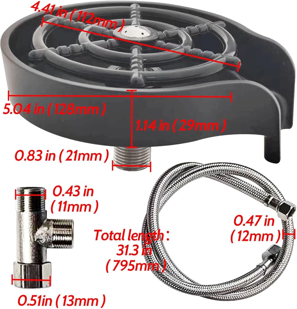 [Kitchen Sink Automatic Cup Washer Size] The diameter of the automatic cup washer is 140 mm/5.51", the height is 30 mm/1.18", and the width of the water outlet is 59 mm/2.32".