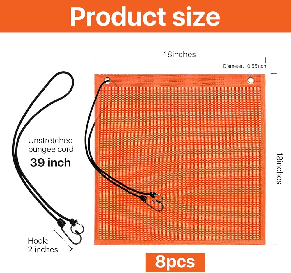Enough Quantity:The package includes 8 pieces safety flags with 18 x 18 inches.Each flag has sturdy safety ropes with a hook and a circular ring at each end, which can be used in various places.