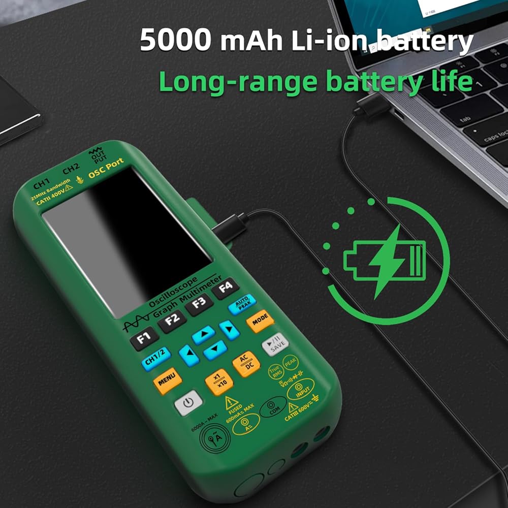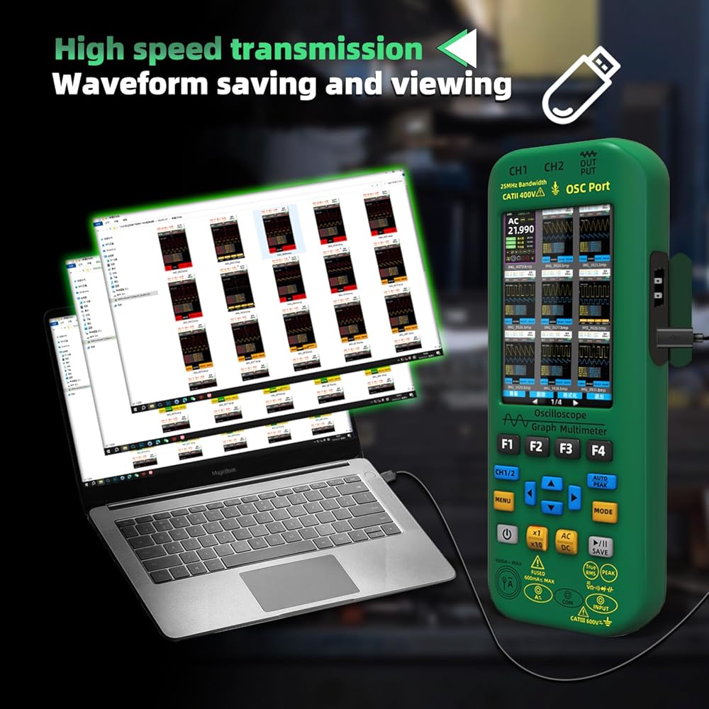 4-in-1 25MHz dual-channel oscilloscope multimeter.