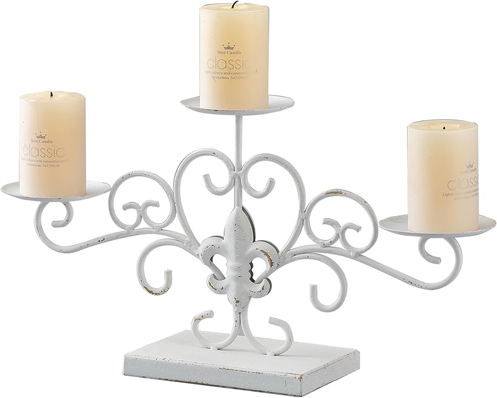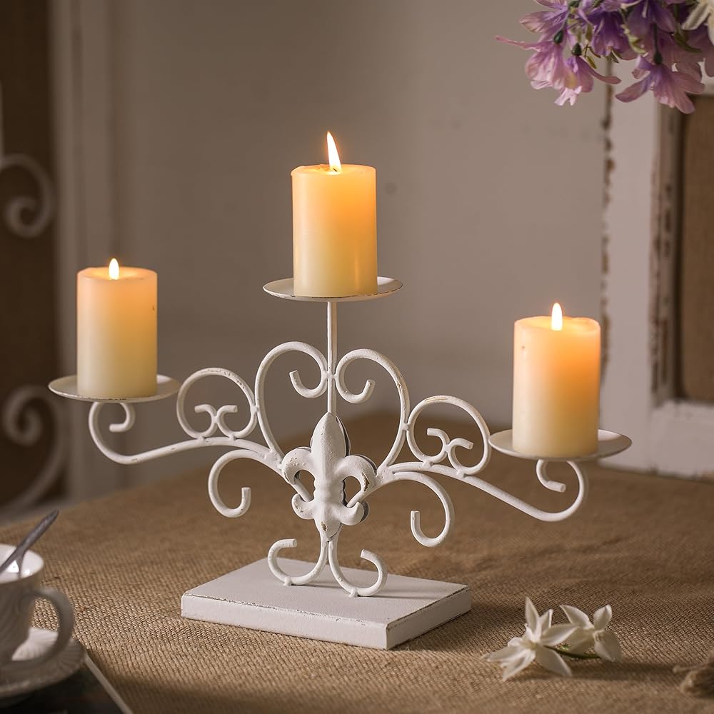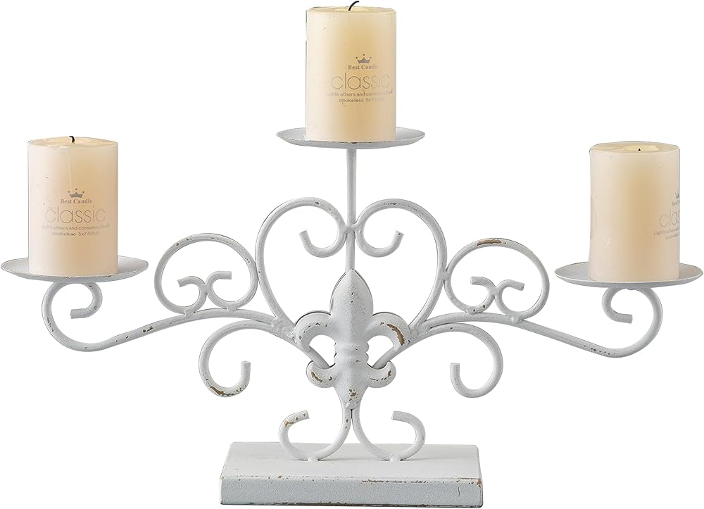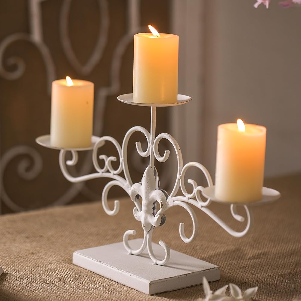 حامل شموع قديم - هذا التصميم المعقد للشمعدانات الحديدية المكون من 3 شموع يظهر الطراز العتيق. سوف يعزز مظهر وتوهج الشموع المفضلة لديك