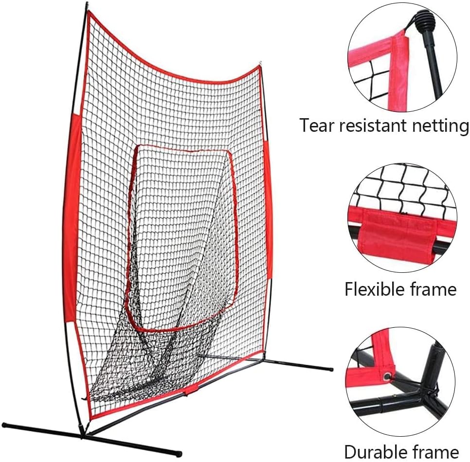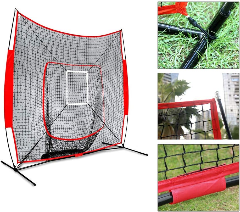 Baseball Practice Net, FOME 7ft x 7ft Softball Practice Net Hitting Batting Catching Pitching Training Net with Strike Zone Fielding Net with Carry Bag Metal Bow Frame Great for all Skill Levels