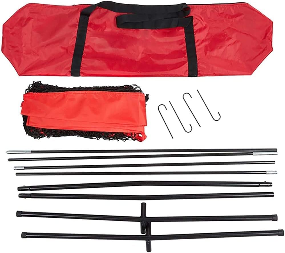 - Made of polyester, iron, and fiber glass, the net offers exceptional balance and strength and is lightweight, for easy portability.