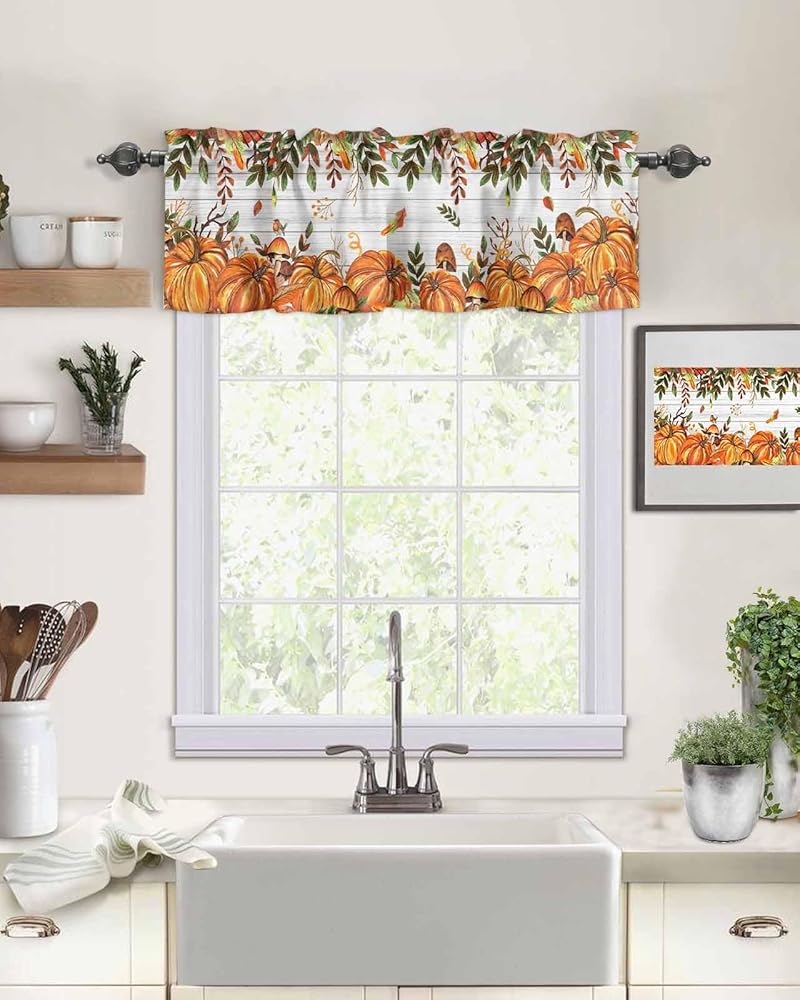 Ideal Home Decoration: The unique autumn prints are designed by professionals, which are clear and beautiful, bringing more atmosphere to life. This tailored valances matching with curtain panels well (similar designed pattern), perfect to cover the upper window of your kitchen, bathroom, laundry room, studio and so on.