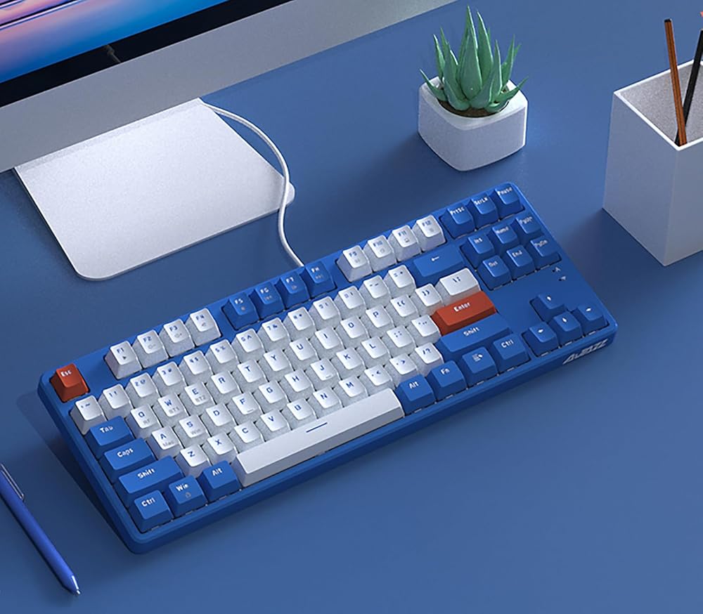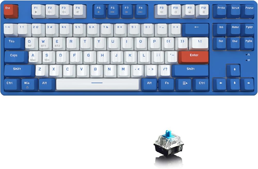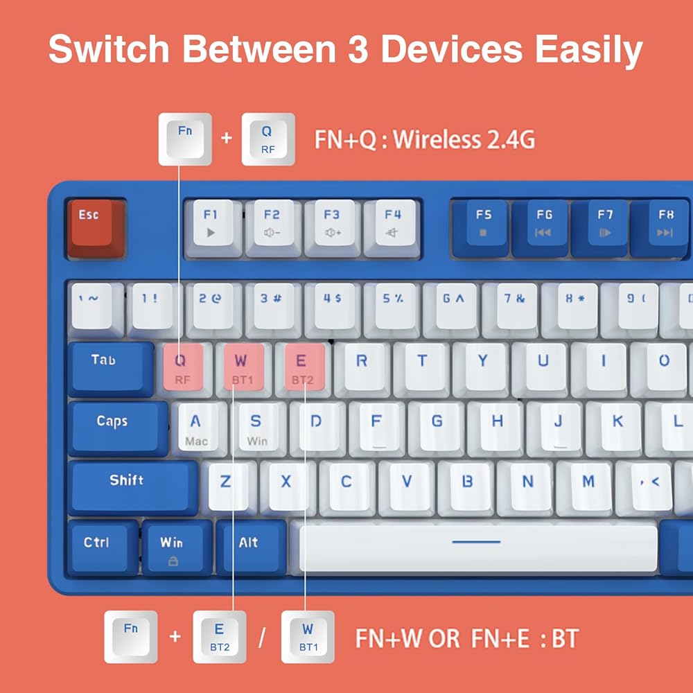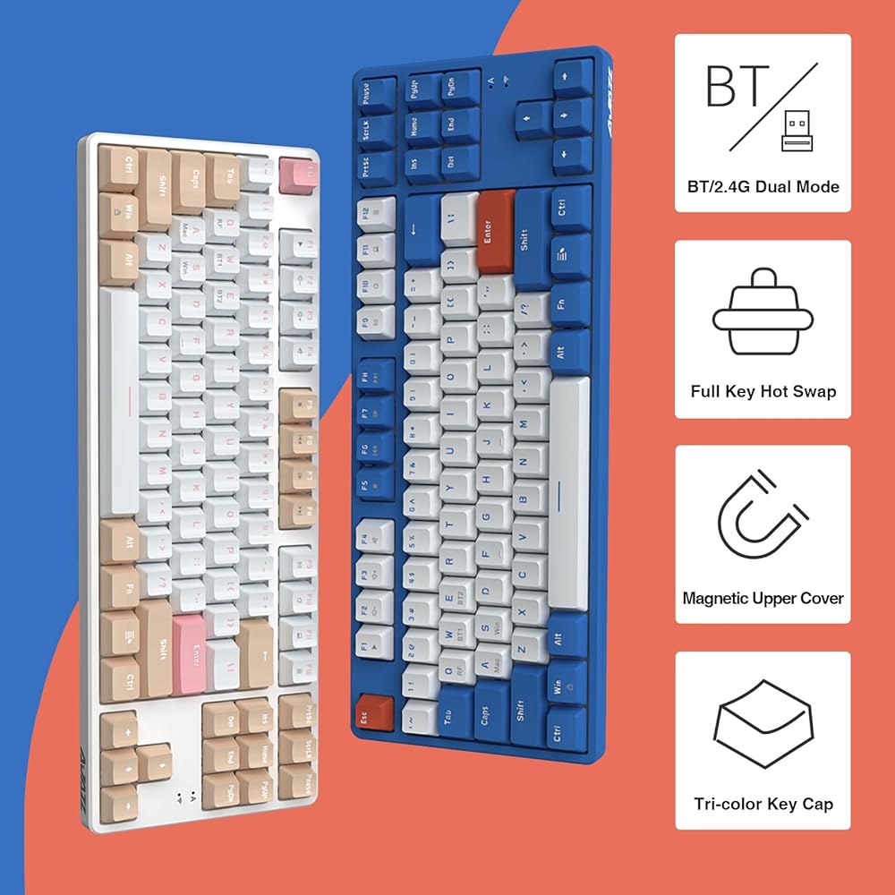 لوحة مفاتيح ميكانيكية لاسلكية AK871 Hot Swap، بلوتوث/2.4G وضع مزدوج، 87 مفتاحًا صغيرًا، تأتي مع 8 أغطية مفاتيح بديلة، متوافقة مع أجهزة الكمبيوتر/الكمبيوتر المحمول/الهاتف الذكي/الكمبيوتر اللوحي