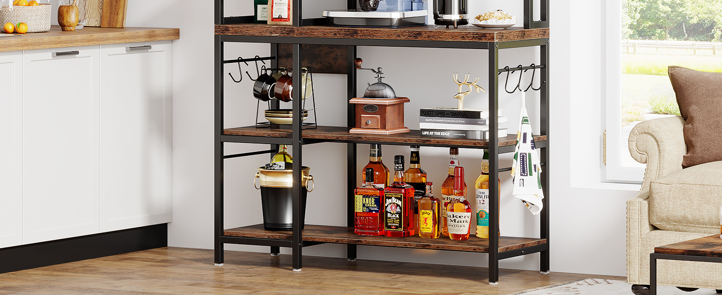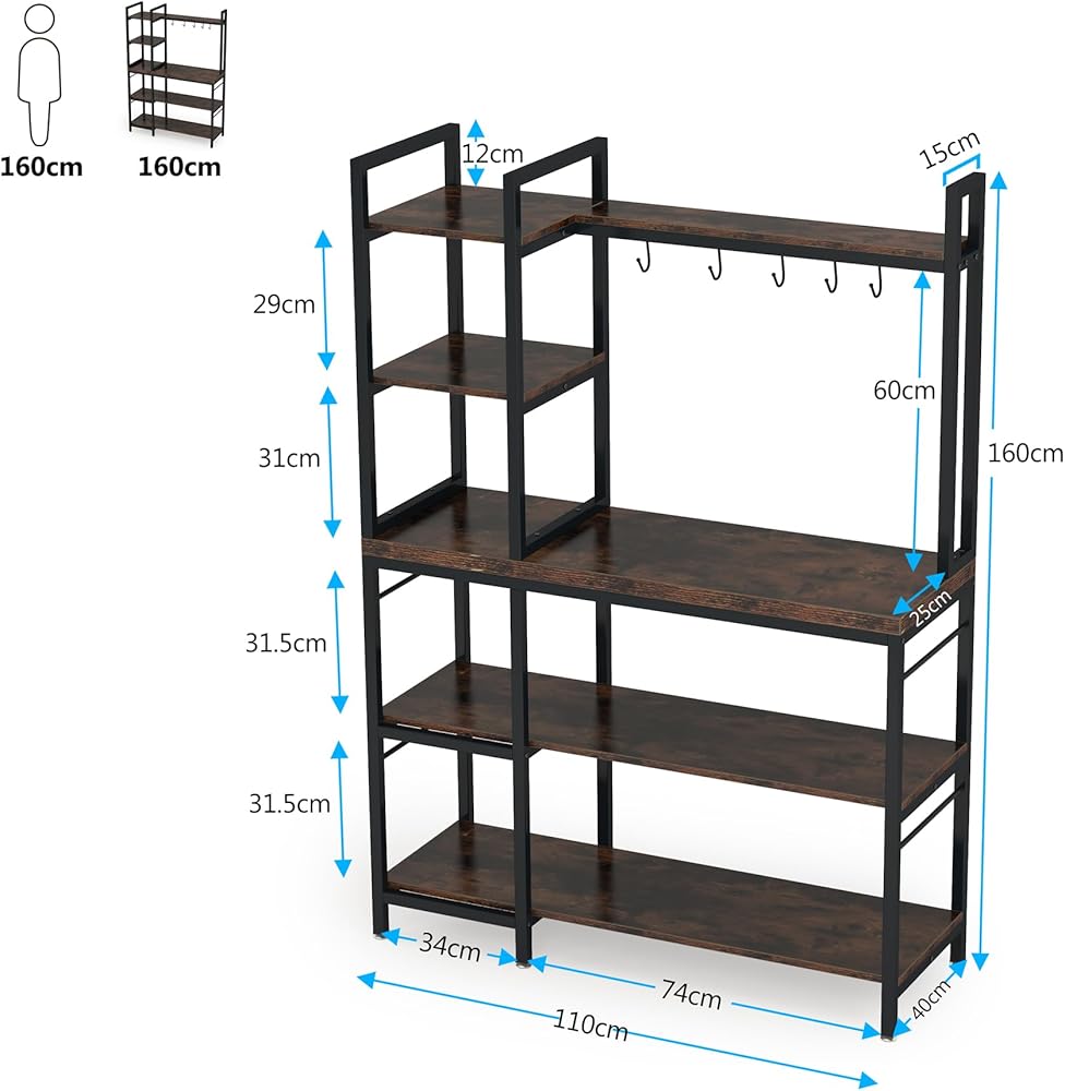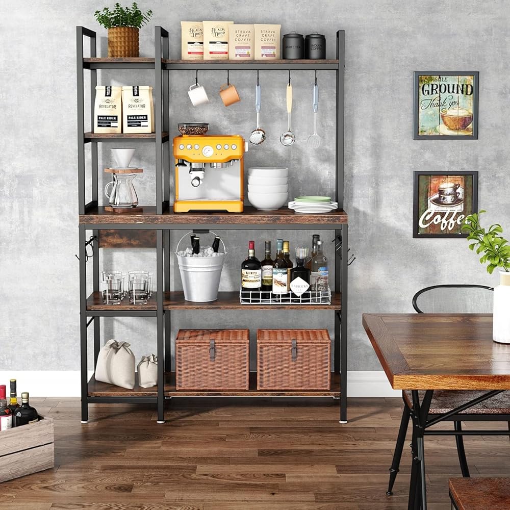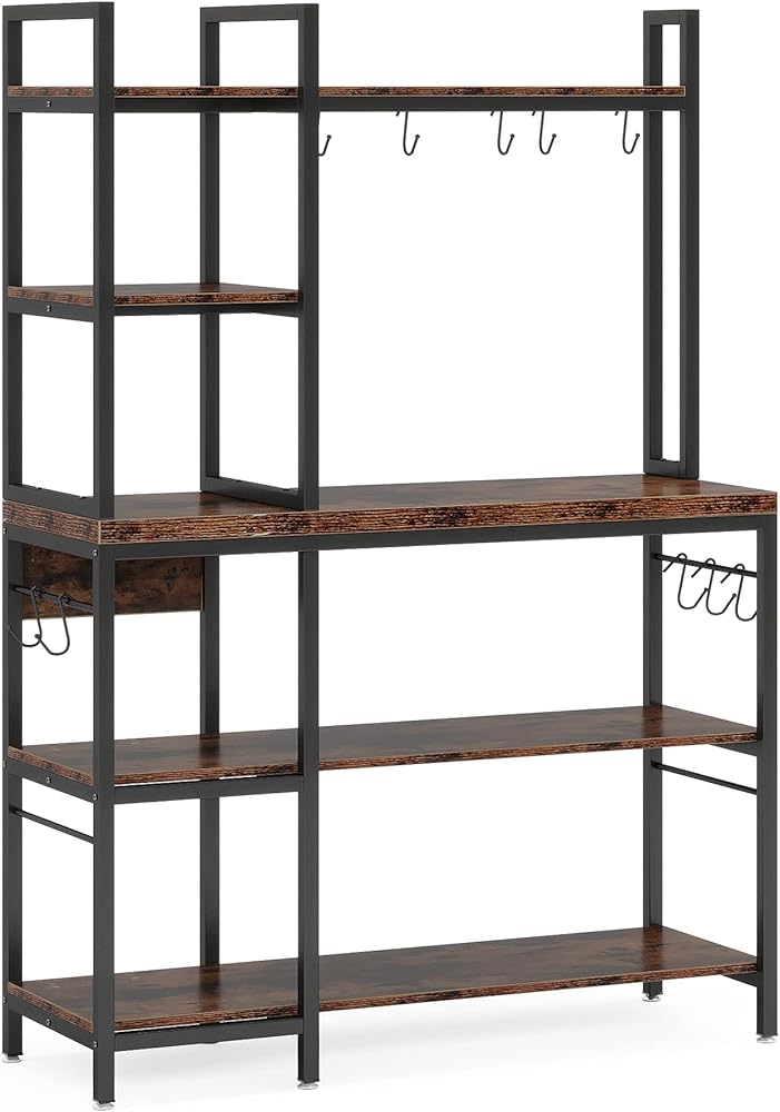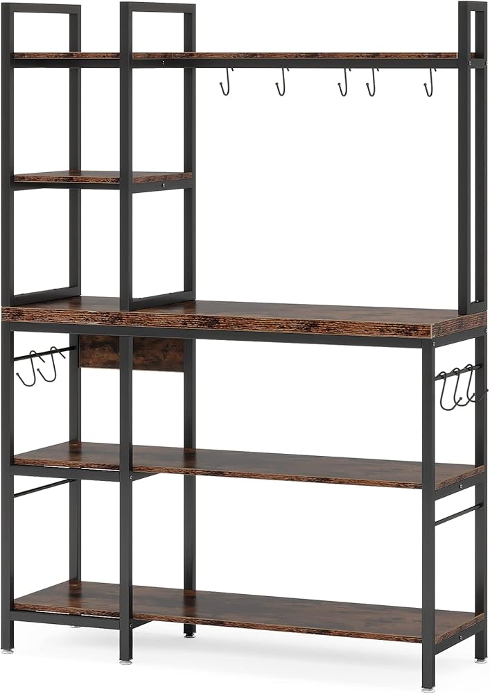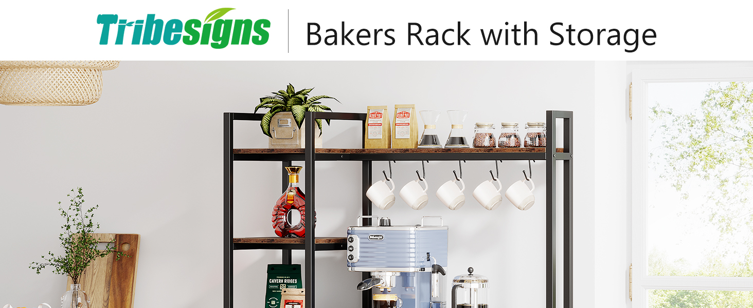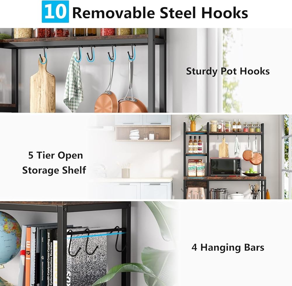 [صغير الحجم وعملي] - رف الخبازين المكون من 5 طبقات من Tribesigns مثالي للاستخدام كرف للمطبخ، أو حامل للميكروويف، أو رفوف لخبز المطبخ مع مساحة تخزين، أو محطة بار القهوة، وما إلى ذلك. 10 خطافات تجعل من السهل تعليق بعض أدوات الطبخ مثل الأواني أو الملاعق أو المقالي أو خفقت. يمكن لرف رف المطبخ الخاص بنا أن يمتزج مع مجموعة متنوعة من الأنماط، خاصة طراز الحظيرة الريفية والتصميم الصناعي