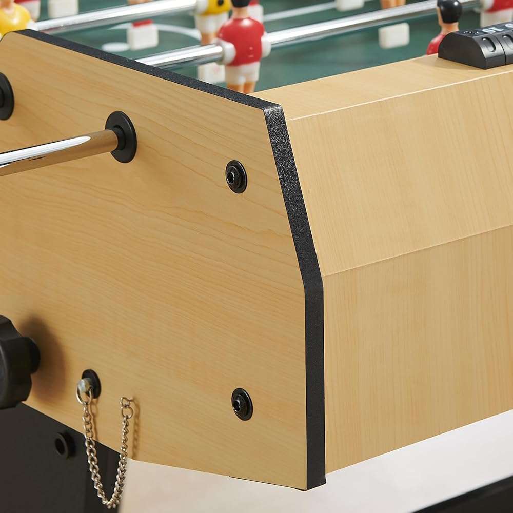 【طاولة كرة قدم قابلة للطي】طاولة كرة القدم هذه مصنوعة من الخشب الهندسي عالي الجودة وسبائك الفولاذ لضمان المتانة والثبات. تتميز بوظيفة قابلة للطي لسهولة التخزين وآلية قفل لضمان بقاءها ثابتة عند الاستخدام. علاوة على ذلك، تم بالفعل تجميع اللاعبين مسبقًا على الأعمدة، مما يوفر عليك عناء التجميع.