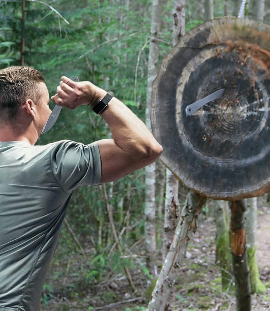 • Full-Tang Throwing Set: This is ergonomically designed, easy to grip, and feels good in your hand, perfect for beginners and professionals alike.