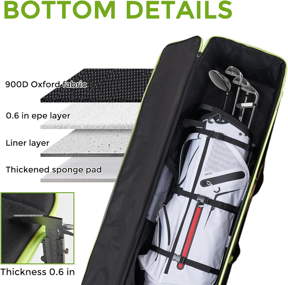 حماية فائقة للنادي: سافر بثقة مع العلم أن نوادي الجولف الخاصة بك محمية جيدًا في حقيبة الجولف الخاصة بنا. توفر المنطقة المبطنة حول الجزء العلوي حماية معززة لرؤساء النادي الخاص بك، حقيبة السفر هذه لنادي الجولف سواء كنت تطير عبر البلاد أو تقود إلى وجهة الجولف التالية، فهذه الحقيبة ستغطي احتياجاتك. إنه الرفيق المثالي للسفر لكل لاعب غولف