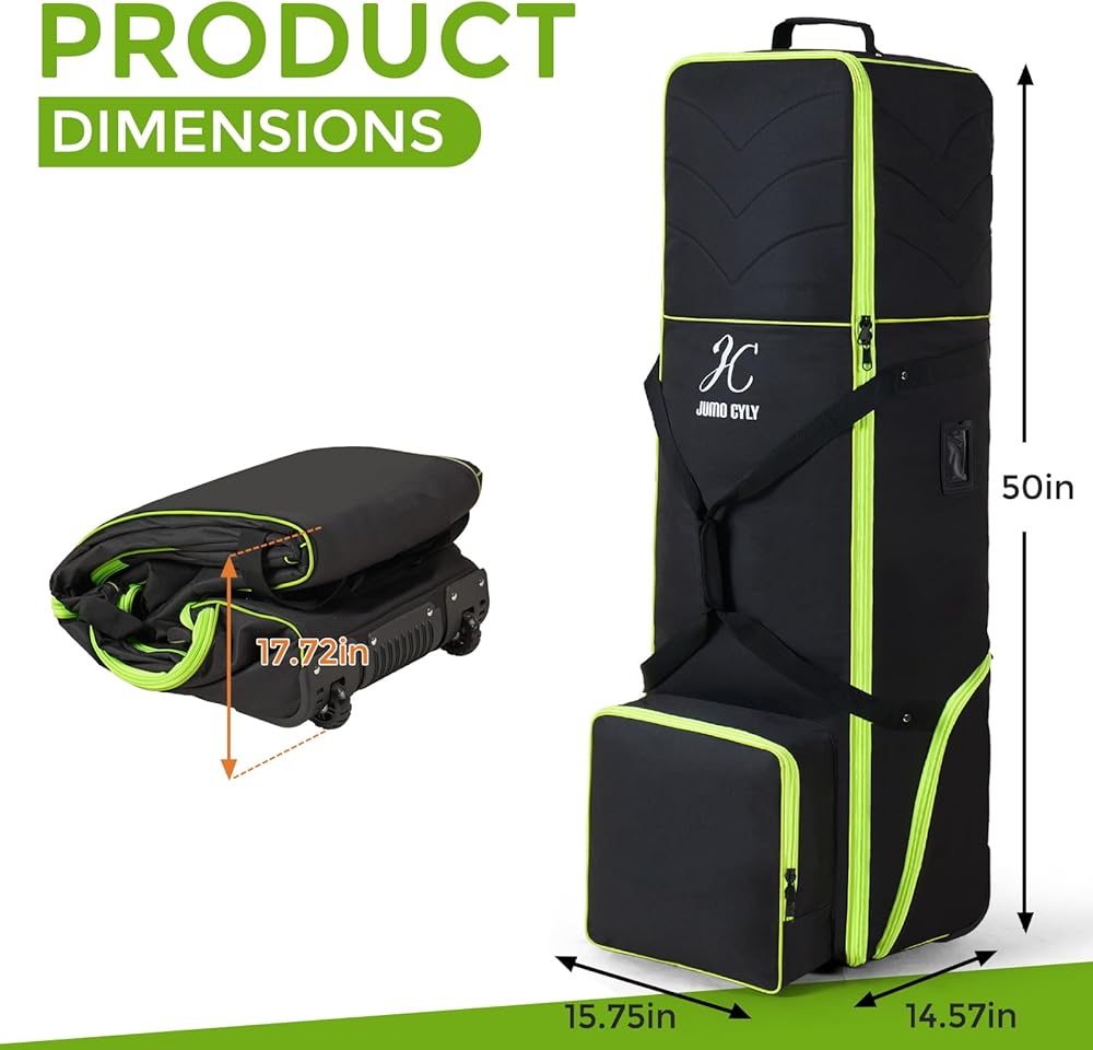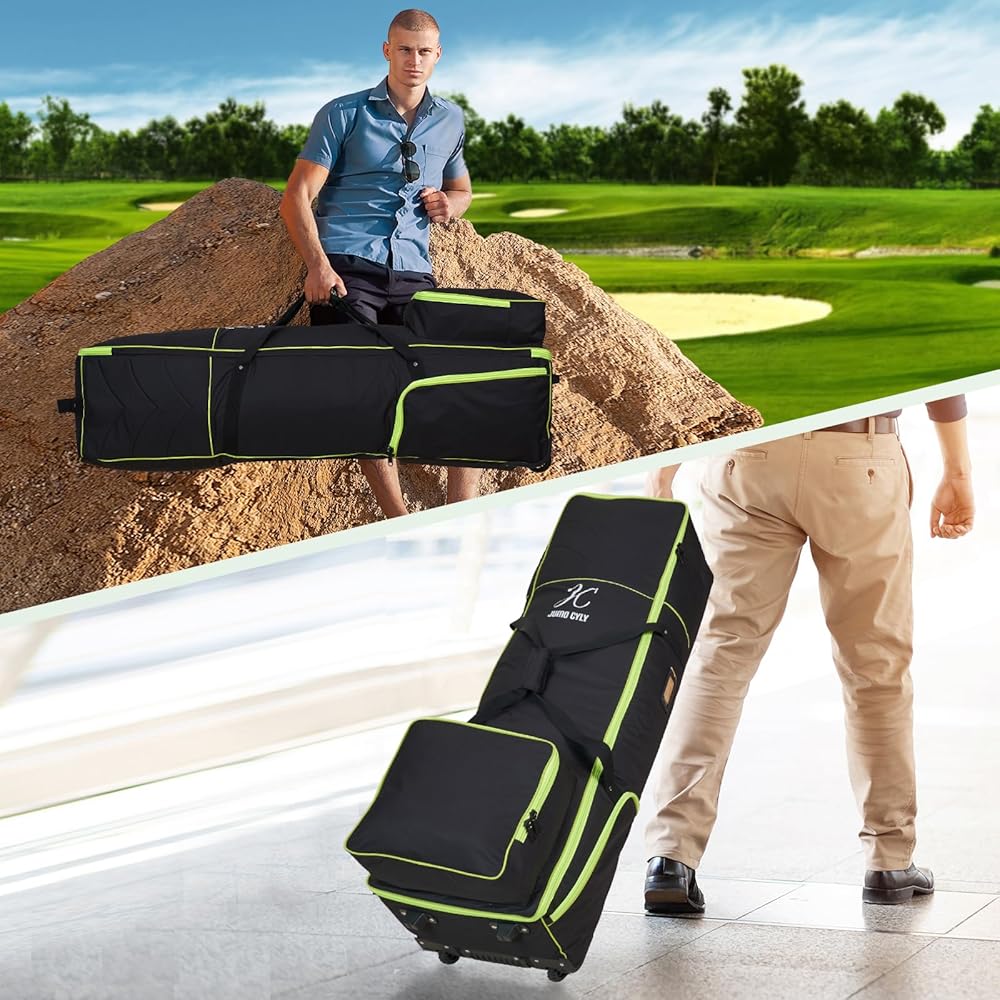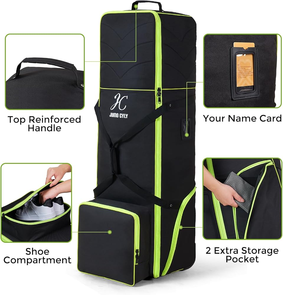 حقيبة جولف للسفر من جومو سيلي، حقيبة جولف للسفر بالطائرة مع عجلات، مبطنة حول الجزء العلوي مع جيوب كبيرة للأحذية، حقيبة سفر لنادي الجولف 900D شديدة التحمل، مقاومة للاهتراء، قابلة للطي، ناعمة الجوانب، أسود
