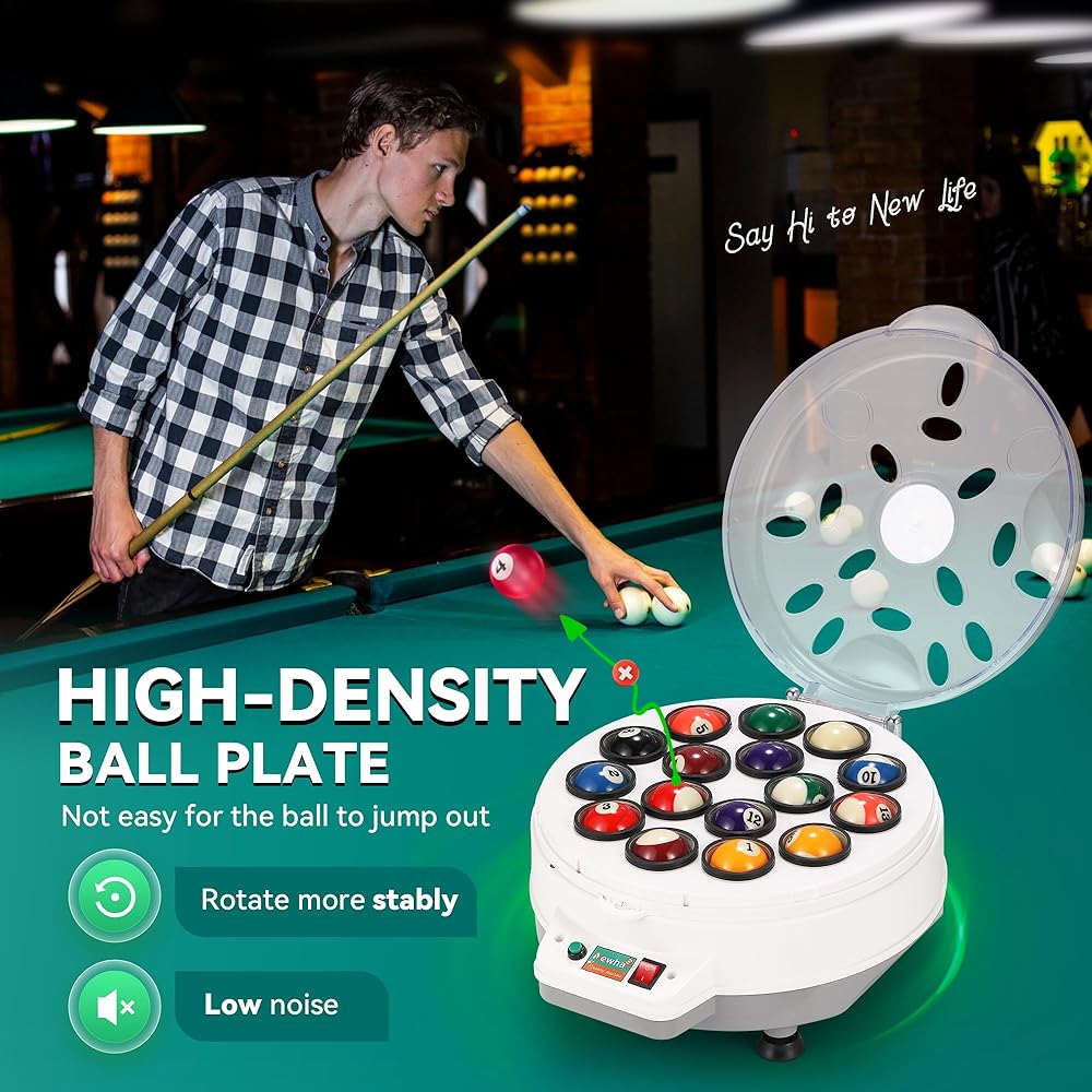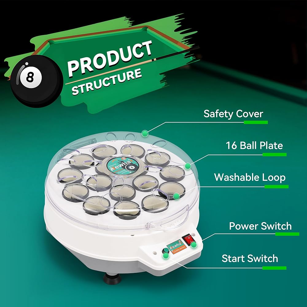 [غسيل الكرة تلقائيًا بالكامل] توفر آلة تنظيف البلياردو تنظيفًا شاملاً لكرات حمام السباحة الخاصة بك. ما عليك سوى وضع الكرات في الغسالة والضغط على الزر. سوف تدور المكنسة تلقائيًا للأمام لمدة دقيقة واحدة، وتتوقف لمدة 30 ثانية، ثم ترجع تلقائيًا لمدة دقيقة واحدة. كل ما عليك فعله هو الانتظار لمدة خمس دقائق للحصول على كرات البلياردو النظيفة حديثًا.