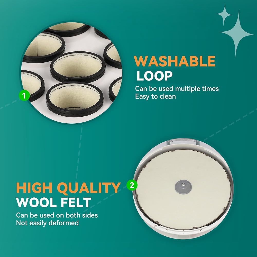 [أجزاء قابلة للاستبدال] يتكون منظف كرة البلياردو المكون من 16 كرة من قرص مكون من 16 كرة، وحلقات قابلة للغسل، ووسادات من اللباد الصوفي، يمكن فصل كل جزء منها بشكل فردي واستبداله بأجزاء جديدة لاستخدام أكثر نظافة وأكثر كفاءة. كما أن عملية الاستبدال بسيطة جدًا ومريحة مما قد تعتقد.