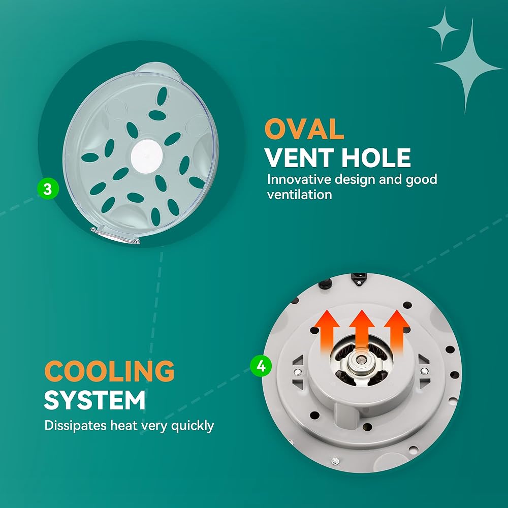 [تبديد سريع للحرارة] لا يضمن المحرك عالي الطاقة بقدرة 180 واط كفاءة غسيل عالية فحسب، بل يشتمل أيضًا على نظام تبريد احترافي مدمج. ومن خلال دمجه مع مخرج الهواء ذو الشكل البيضاوي الموجود على غطاء الآلة، فإنه يتيح تبديد الحرارة بسرعة، وبالتالي إطالة عمر الآلة.