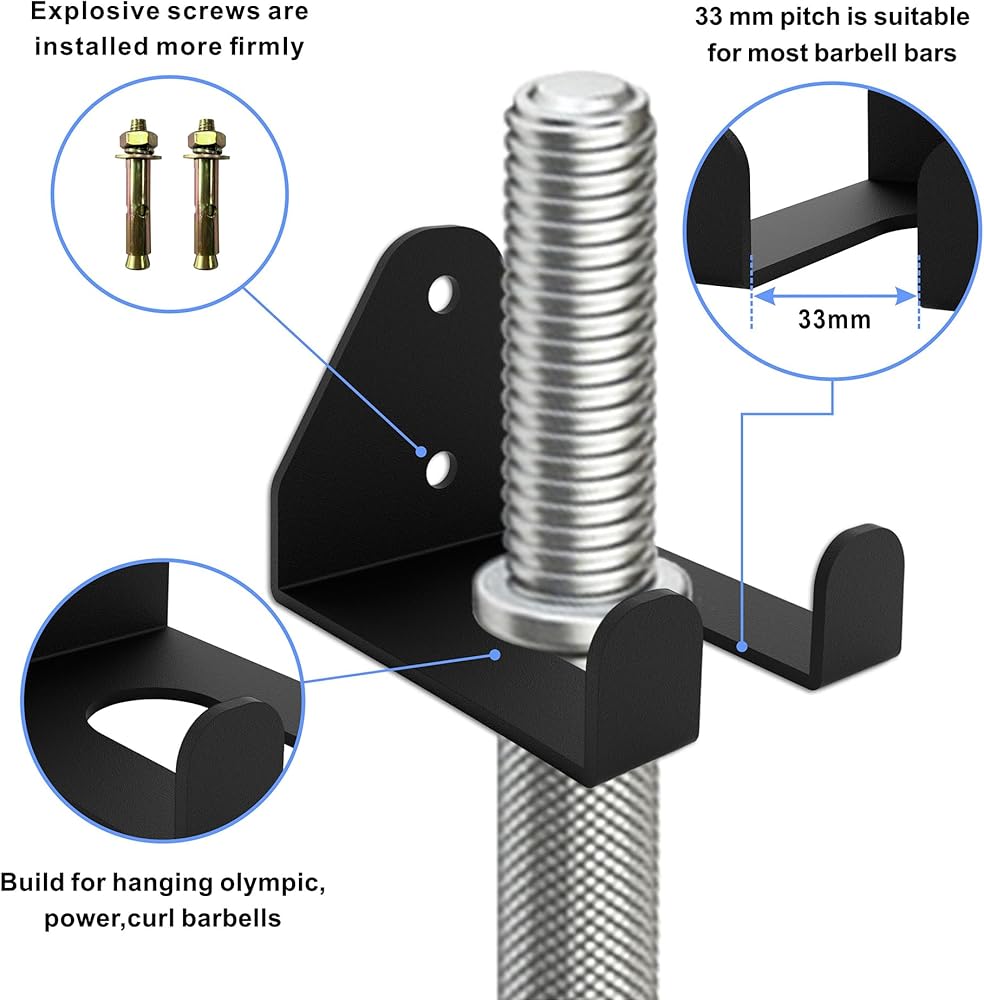 【 Best size 】This wall-mounted barbell frame measures 6.4 x 3.7 x 2.9 inch .The gap between the prongs is 33mm. Barbell holder wall mount can neatly hang Olympic sized barbells, curl bars, shaft bars or other professional bars on the wall, which helps to maximize the available space in a home or garage gym.