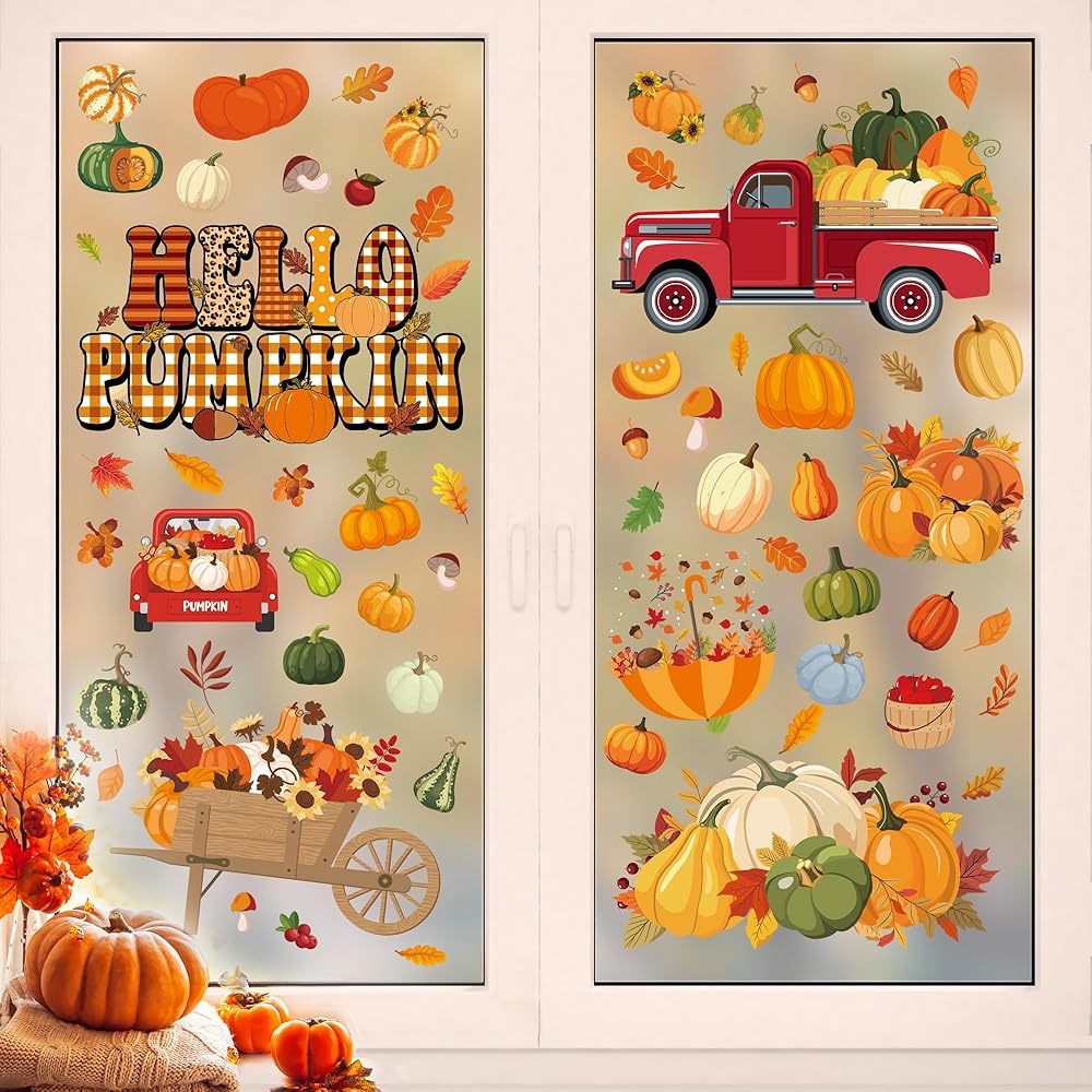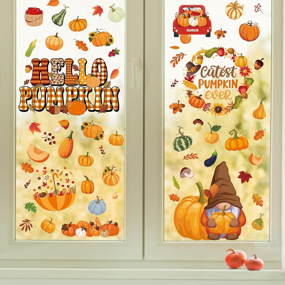 ديكورات THNAKSGIVING - تطبيق واسع: ملصقات الخريف الخاصة بنا للنوافذ الزجاجية تلتصق بالأسطح المختلفة مثل النوافذ والزجاج والمرايا وأبواب الثلاجة. رائع لمناسبات الخريف والخريف وعيد الشكر وموسم الحصاد. ملصقات عيد الشكر هذه للنوافذ ليست مجرد ديكورات؛ إنها هدايا مبهجة للأصدقاء والعائلة، وتضيف لمسة من سحر الحصاد إلى أي ديكورات خريفية للمنزل.