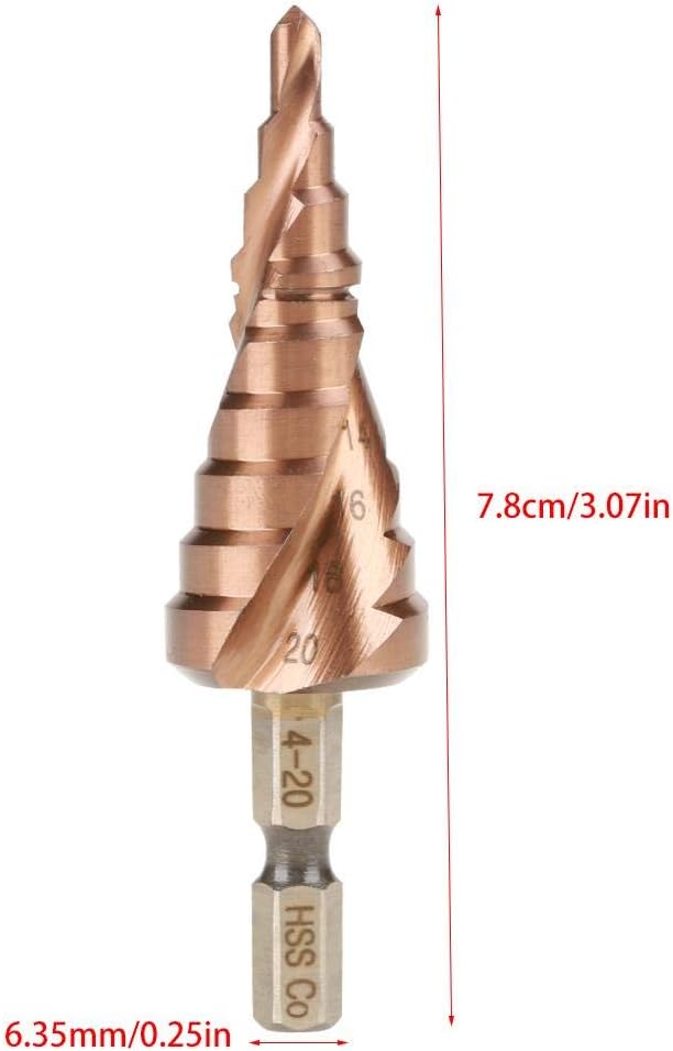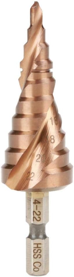 Spiral Step Cone Drill Bit is made from high quality highspeed steel with coated to reduce friction and heat, which is used tocut thin iron plate, aluminum material, insulation plate, PVC plate and more.Unique step structure make it possible to open various size of holes.