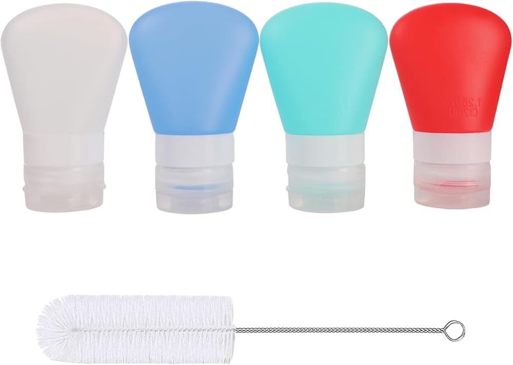 4 عبوات 1.3 أونصة. اضغطي على زجاجات تتبيلة السلطة باستخدام فرشاة التنظيف | حاوية تتبيلة سلطة صدف صغيرة جاهزة للاستخدام | زجاجات بهار زجاجة صلصة محمولة | سيليكون صالح للطعام، خالٍ من مادة BPA
