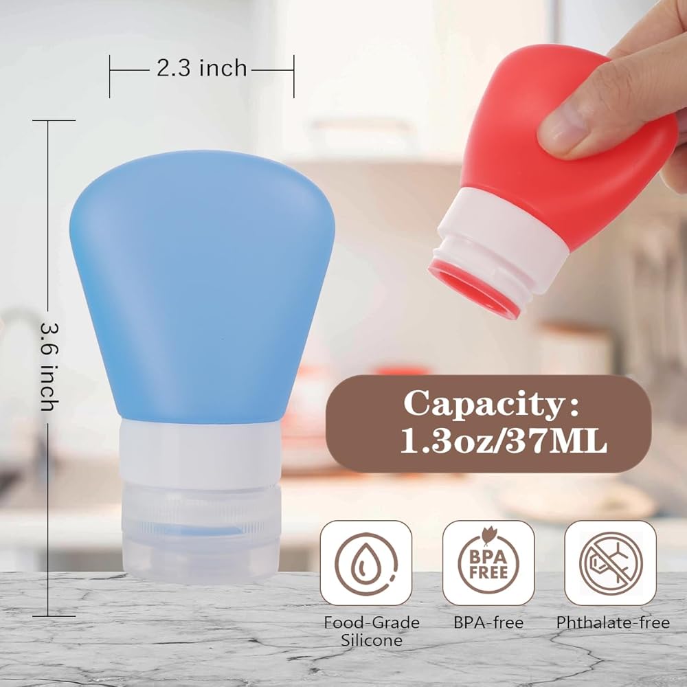 • ✅【سيليكون بدون BPA】- سيليكون صالح للطعام بدون BPA، ناعم، يدوم طويلاً، بدون رائحة كيميائية. سعة 1.3 أونصة تتضمن ألوانًا شفافة/أحمر/أخضر/أزرق