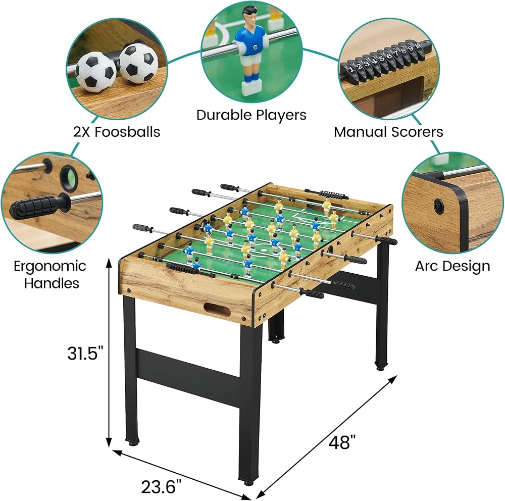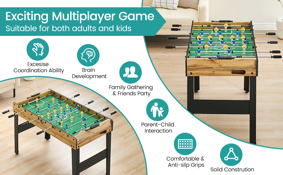 【طاولة كرة القدم لدينا يمكن أن تستوعب اللعب العائلي مع أربعة أشخاص ولعبة ثنائية اللاعبين مع الأصدقاء. يمكن وضعها في غرفة ألعاب مخصصة أو في غرفة المعيشة، مما يضيف المزيد من المرح إلى تجمعاتك العائلية أو زيارات الأصدقاء.
