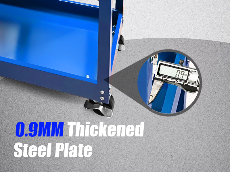 【عجلات دوارة】: مجهزة بعجلات مطاطية (2 بفرامل و2 عالمية)، تحتوي العربة الدوارة على مسامير عجلات قوية وصنابير عجلات لمقاومة الكسر، ويمكنك نقل عربة الأدوات إلى أي مكان دون جهد؛ عندما لا تكون في الحركة، فقط قم بقفل العجلات.