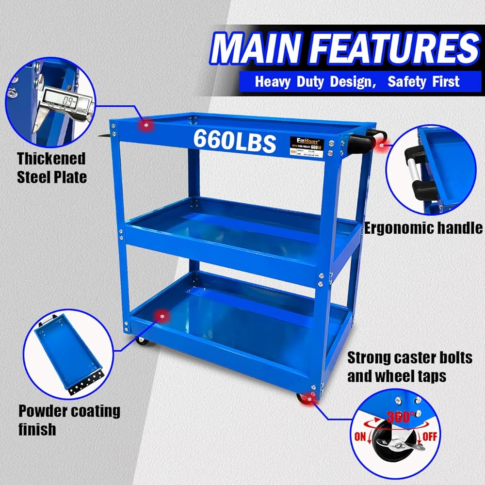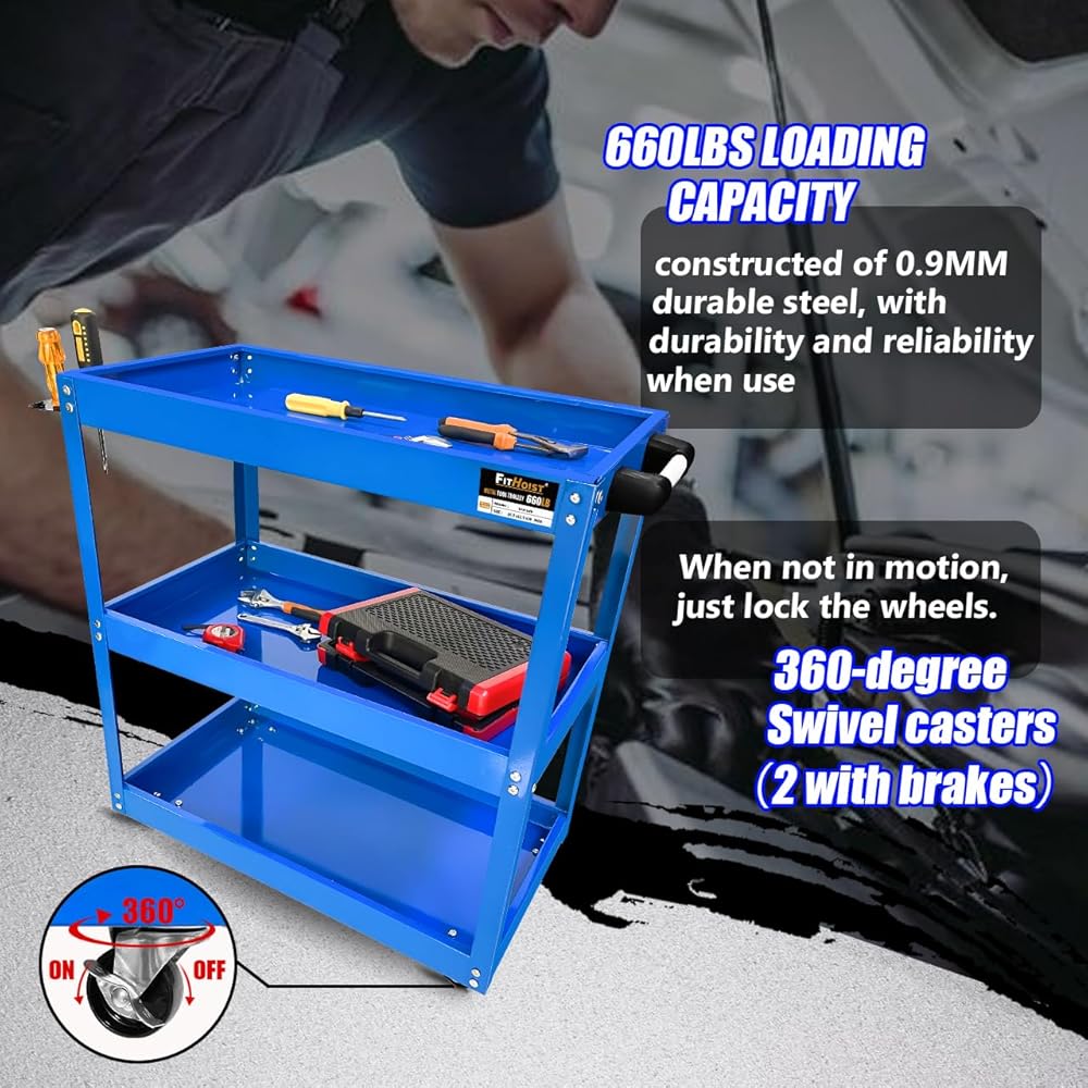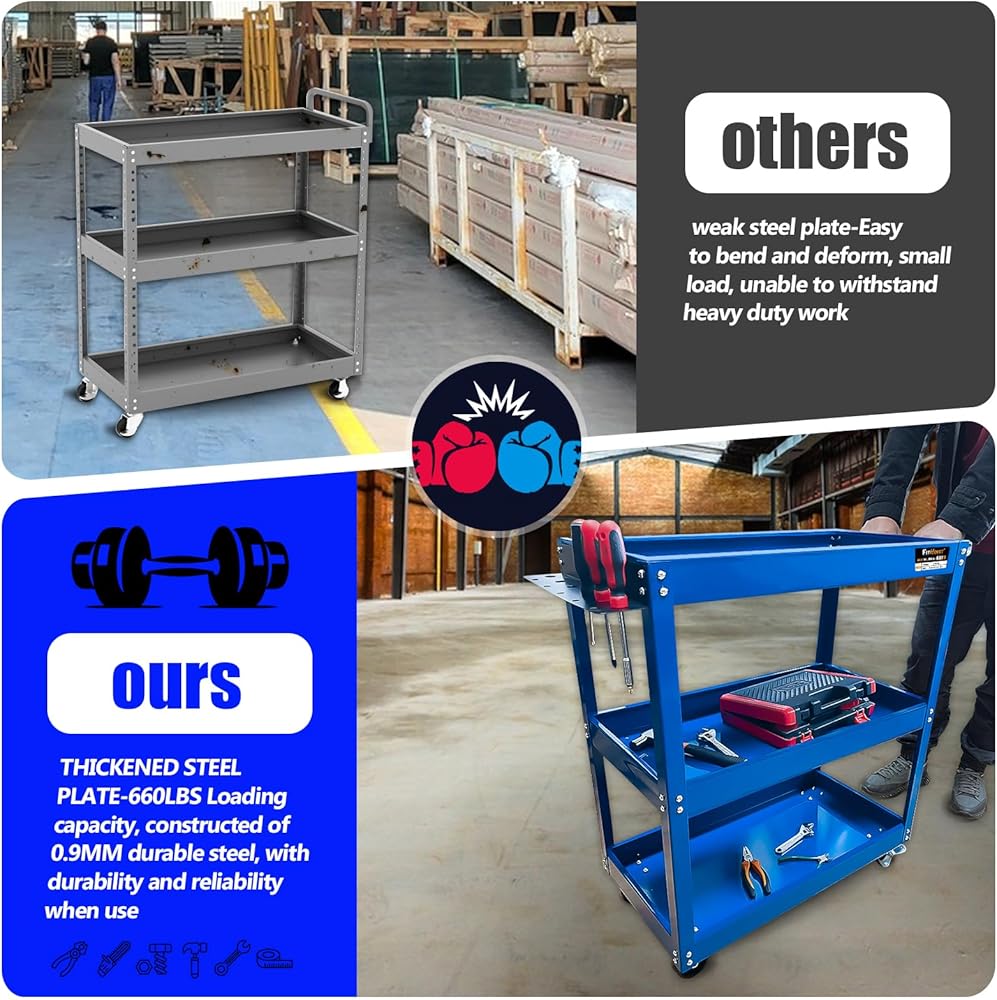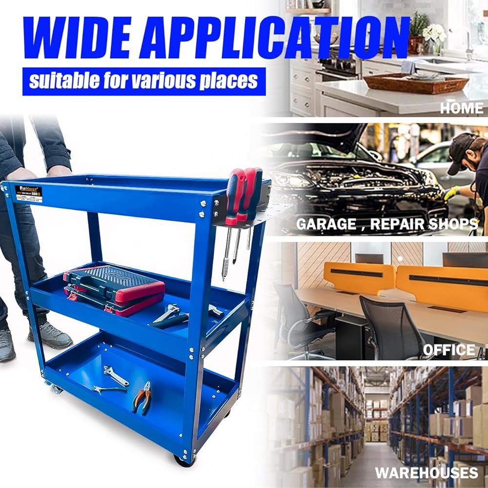 【تطبيق واسع 】: مع المقبض المريح والعجلات الدوارة. عربة الأدوات الميكانيكية الدوارة مناسبة لمختلف المناسبات، مثل المنزل والمكتب والجراج والمستودعات ومحلات التصليح والمطاعم وورش العمل والمكتبات والمزيد.