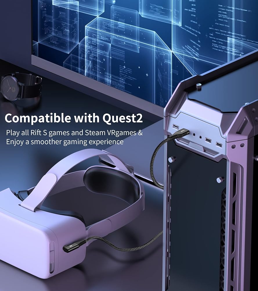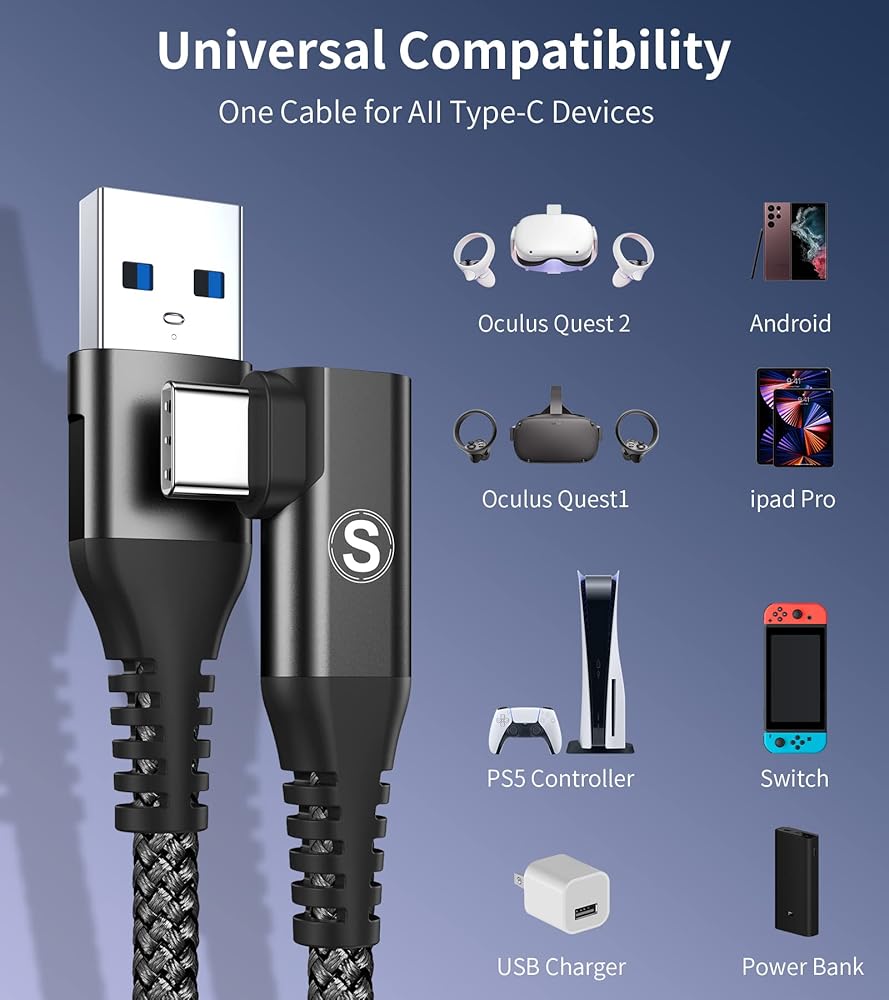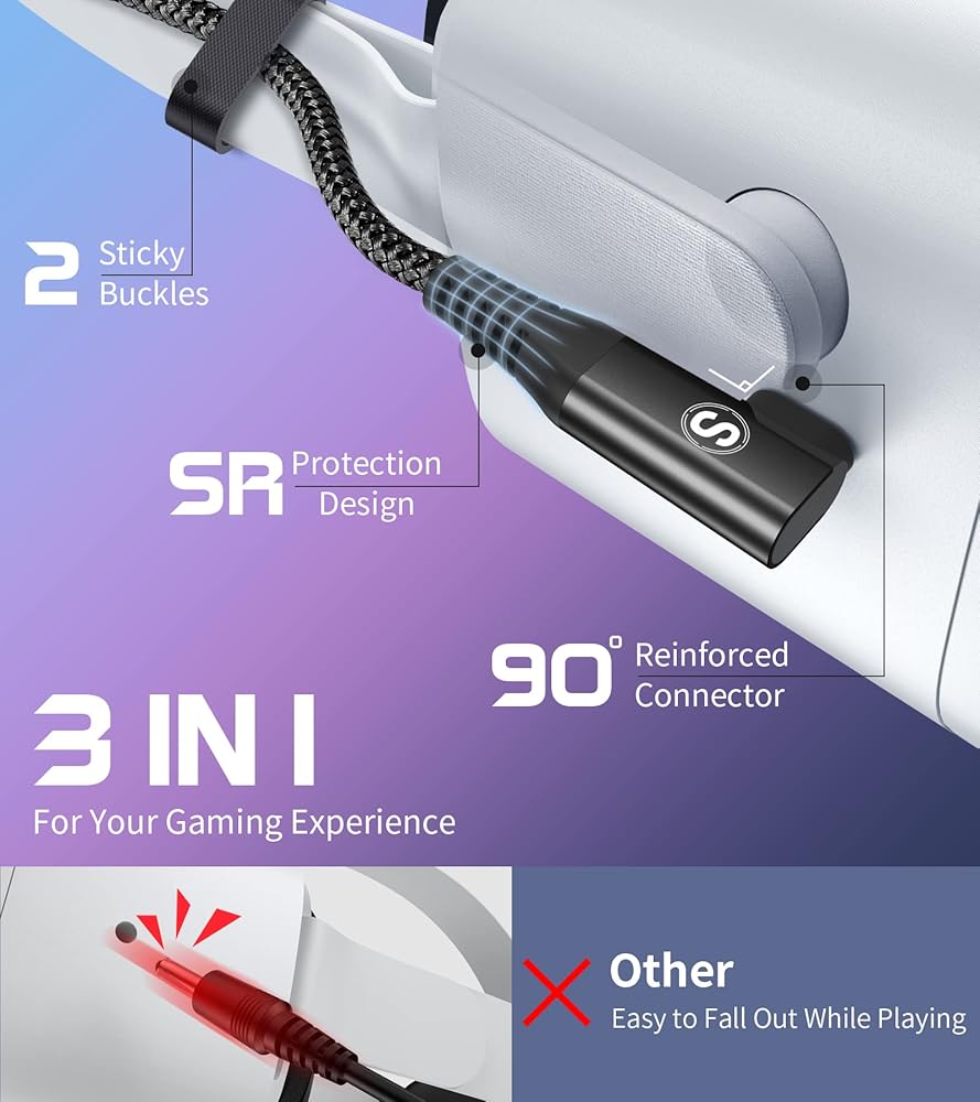 💪【فعال للغاية من حيث التكلفة】: كابل Sweguard Link الذي يجمع بين ميزتي الطول وأداء الاتصال الممتاز سيجعلك تشعر بقيمة جيدة مقابل المال. للتذكير، سيقل تيار الشحن مع زيادة طول الكابل، لذلك لا ننصح باستخدام هذا الكابل لشحن جهاز Quest2 الخاص بك. بالإضافة إلى ذلك، لتعزيز تجربة الواقع الافتراضي الخاصة بك، لا نوصي باستخدام هذا الكابل عندما يكون Quest2 في مستوى بطارية منخفض.