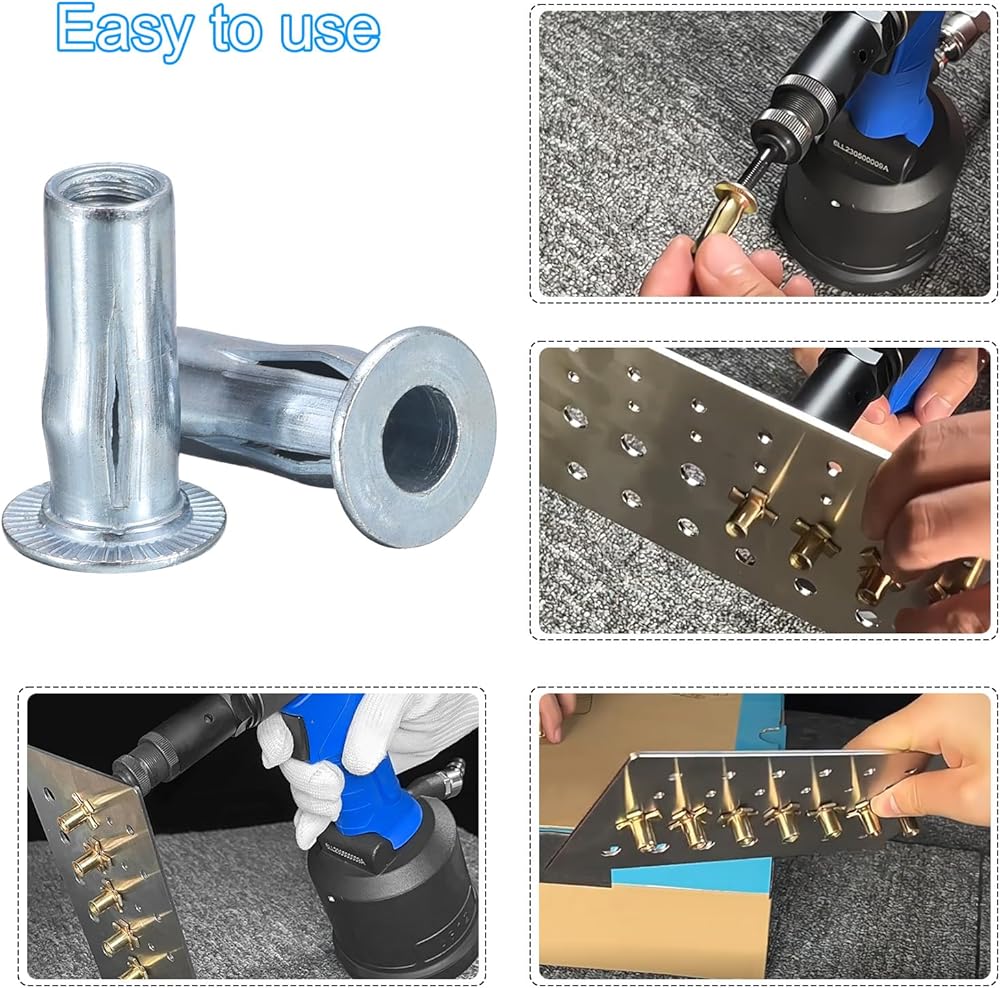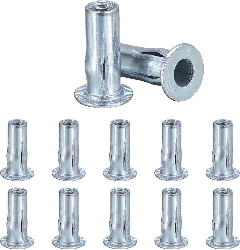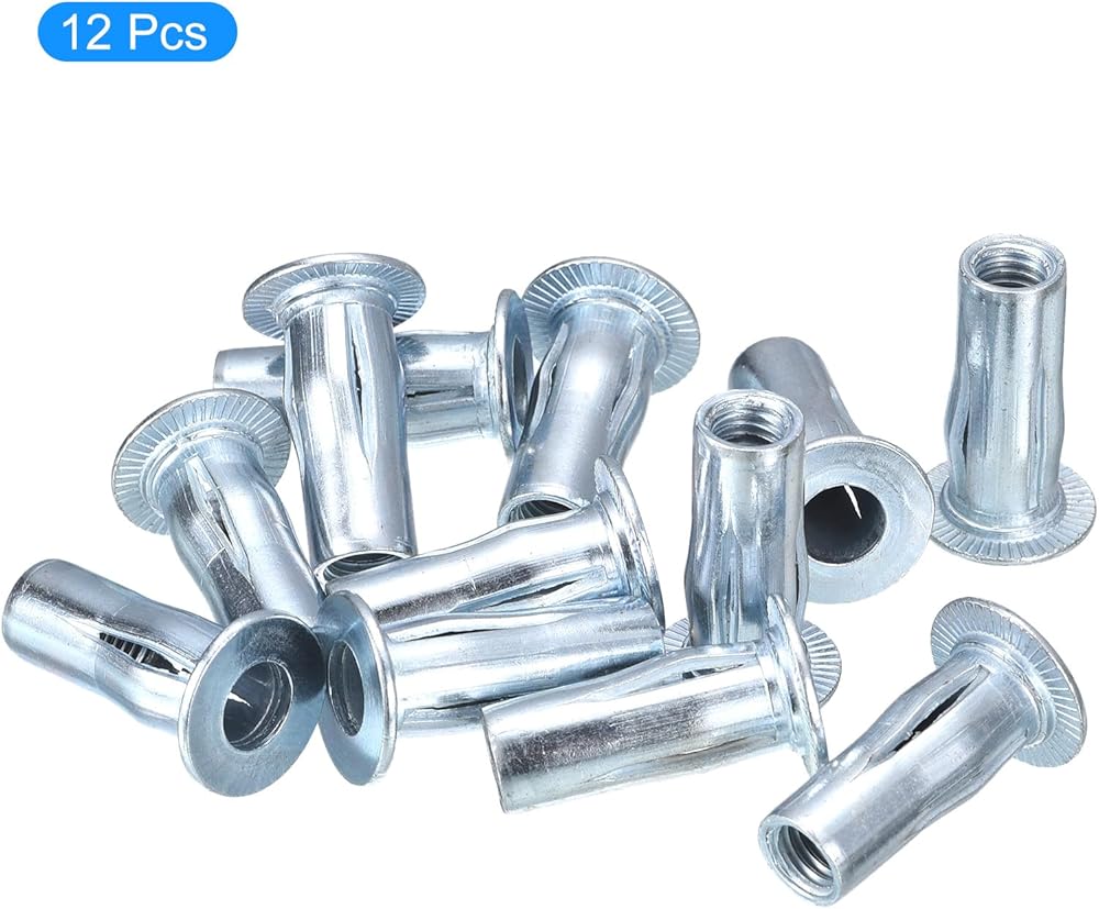صواميل برشام M8 متعددة القبضة، 12 قطعة من ساق مسطحة مسبقة اللمعة برأس ملولب من الفولاذ الكربوني بالإضافة إلى مثبتات بناء المكسرات للأغراض الصناعية