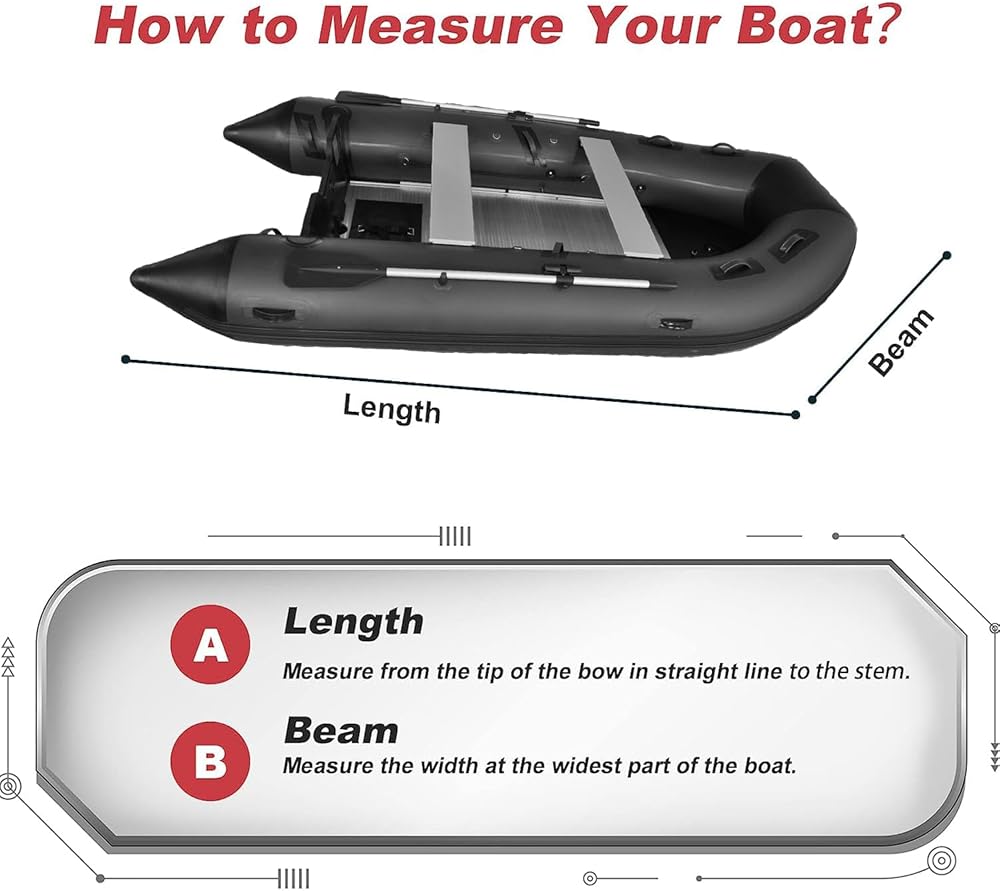❤️ DINGHY BOAT COVER: Boat cover has passed the durability test of hail, storms, and a large amount of water, with excellent results and withstood the test without any signs of water seepage. Therefore, you can safely place the inflatable boat outdoors. It is suitable for a Up to 9.5'-10.5' L, beam width 70". The cover is good, and the materials are also good.