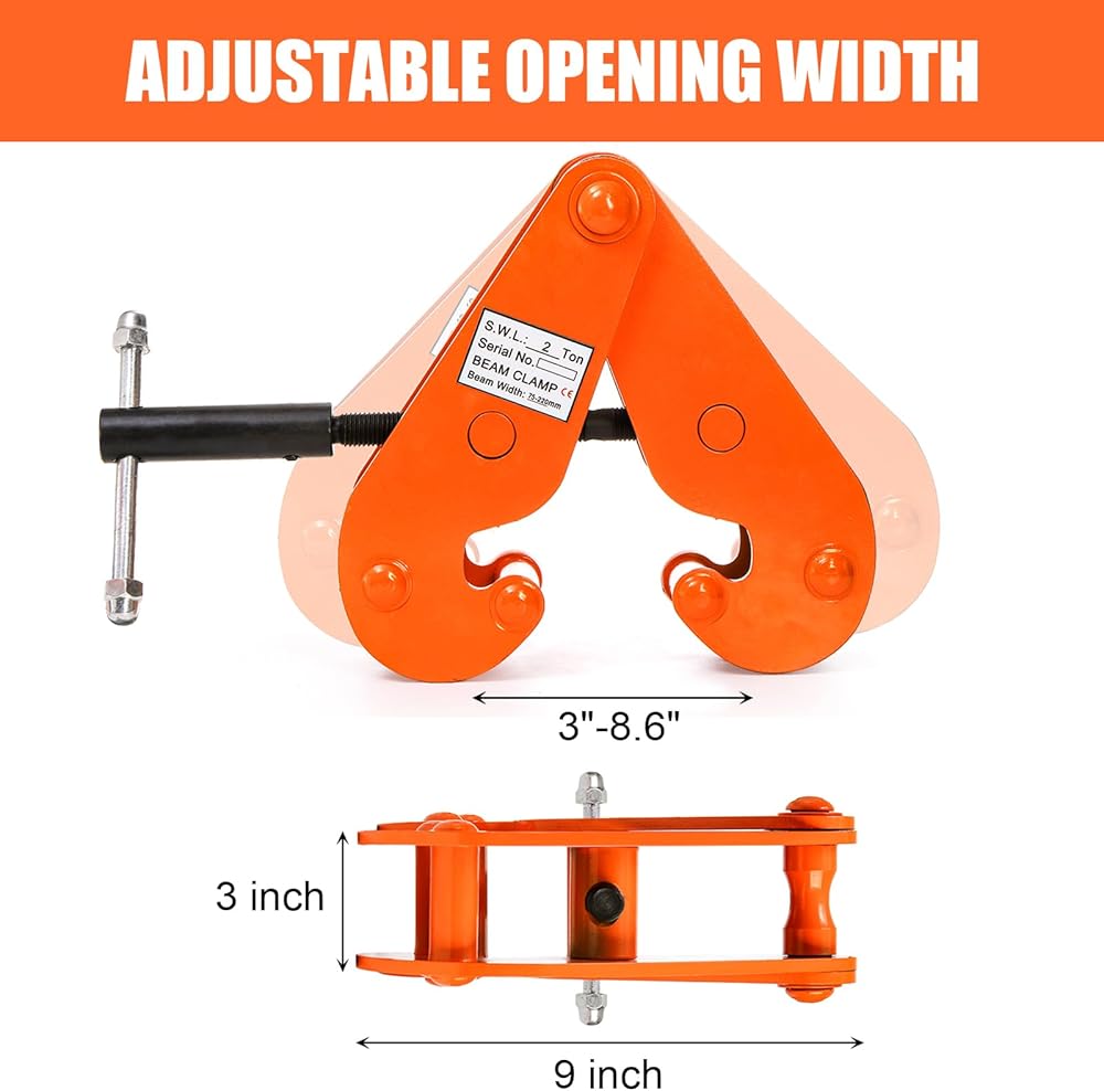 سعة الخدمة الشاقة: يرفع مشبك الشعاع I بأمان ما يصل إلى 4400 رطل (2 طن) ويمكن تعديله من 3 بوصات إلى 8.6 بوصة ليناسب أي شعاع I. هذا المشبك الشعاعي قادر على التعامل مع الأحمال الثقيلة بسهولة، مما يجعله مثاليًا لمهام الرفع الصعبة.